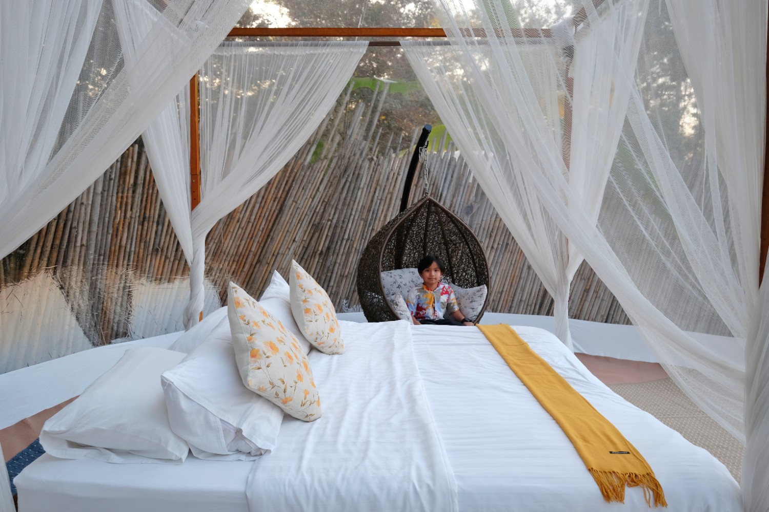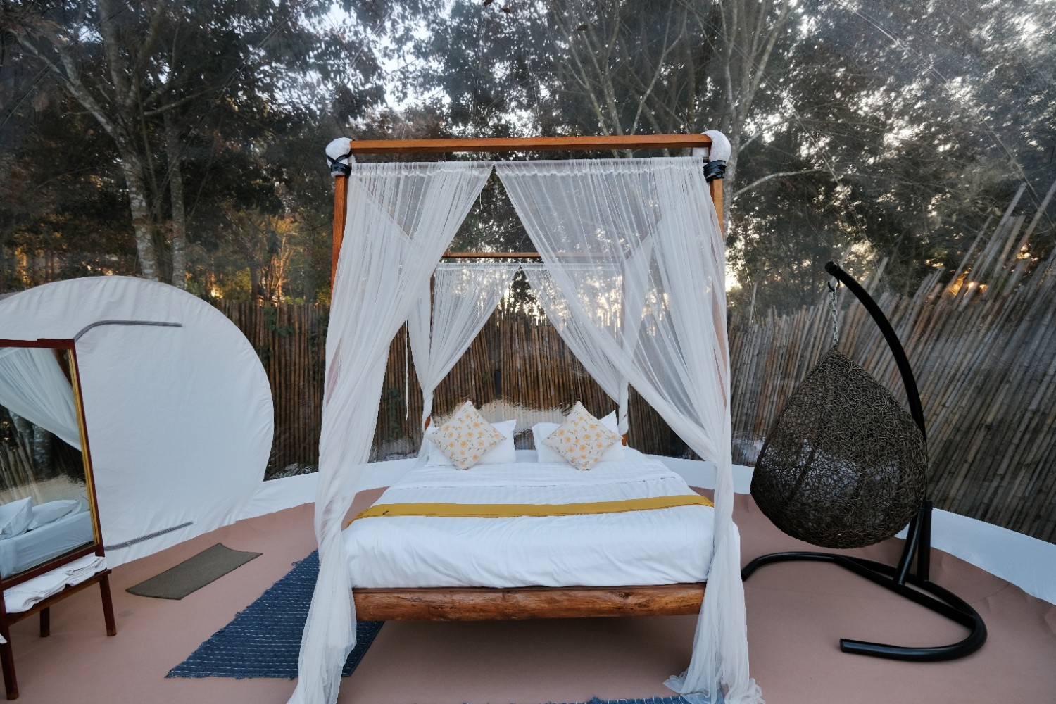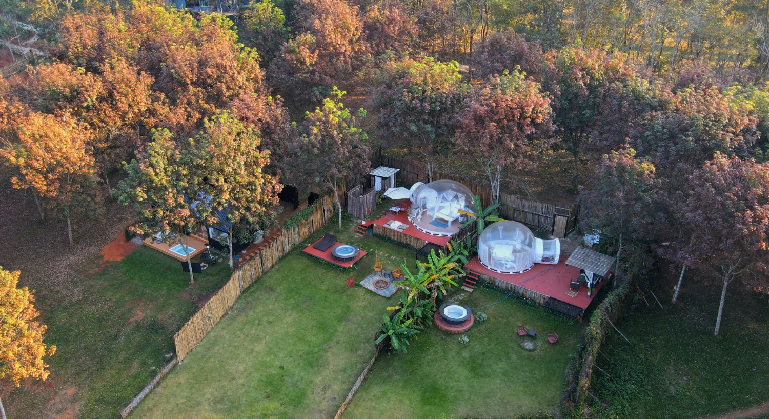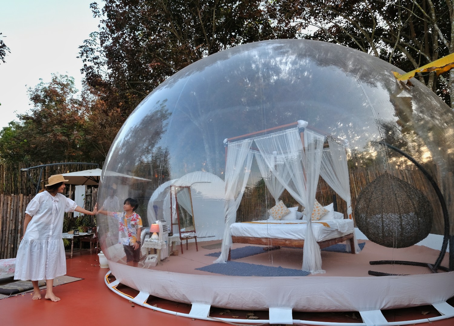 ที่พักมีเพียง 3 หลัง แบ่งเป็น ที่พักแบบโดมใส 2 หลัง และ Glass Cabin คาบิ้นกระจกใสเลื่อนได้ 1 หลัง มีธรรมชาติล้อมรอบ แบบไม่ต้องเดินทางขึ้นดอยเลย
