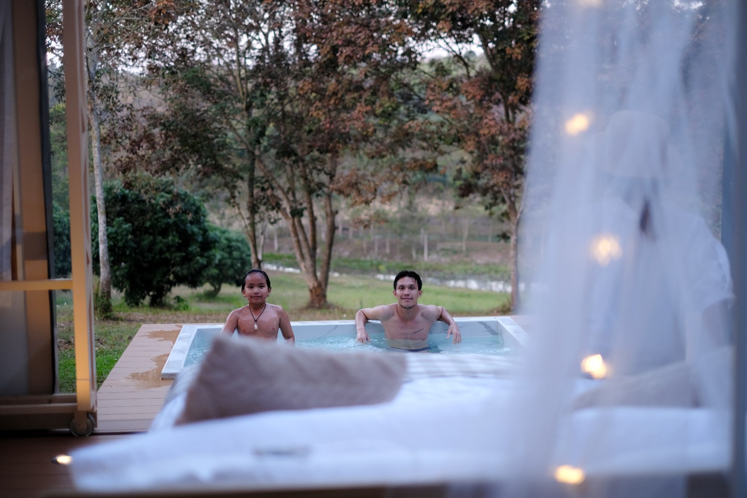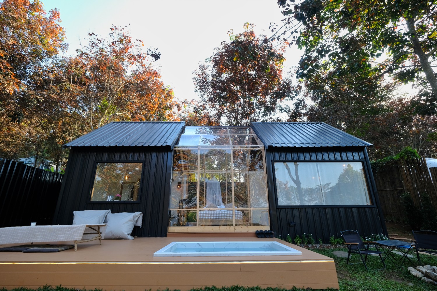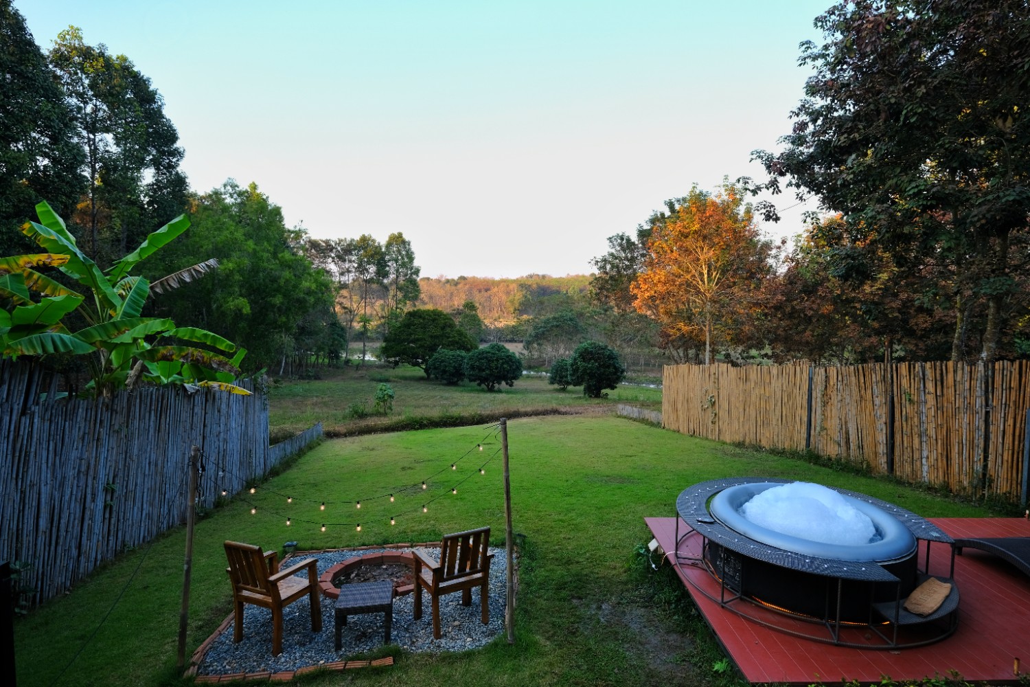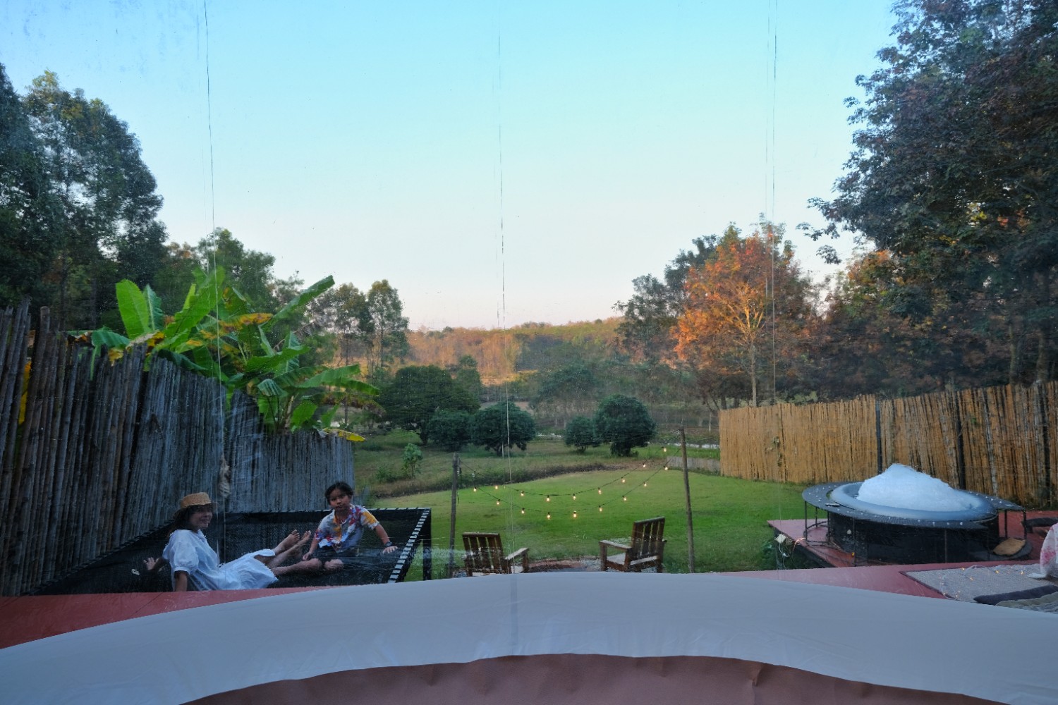 โดมใส สวยงาม มีตาข่าย , อ่างจากุซชี่พร้อมระบบตีฟอง และพื้นที่สนามหญ้าส่วนตัววิวลำธาร