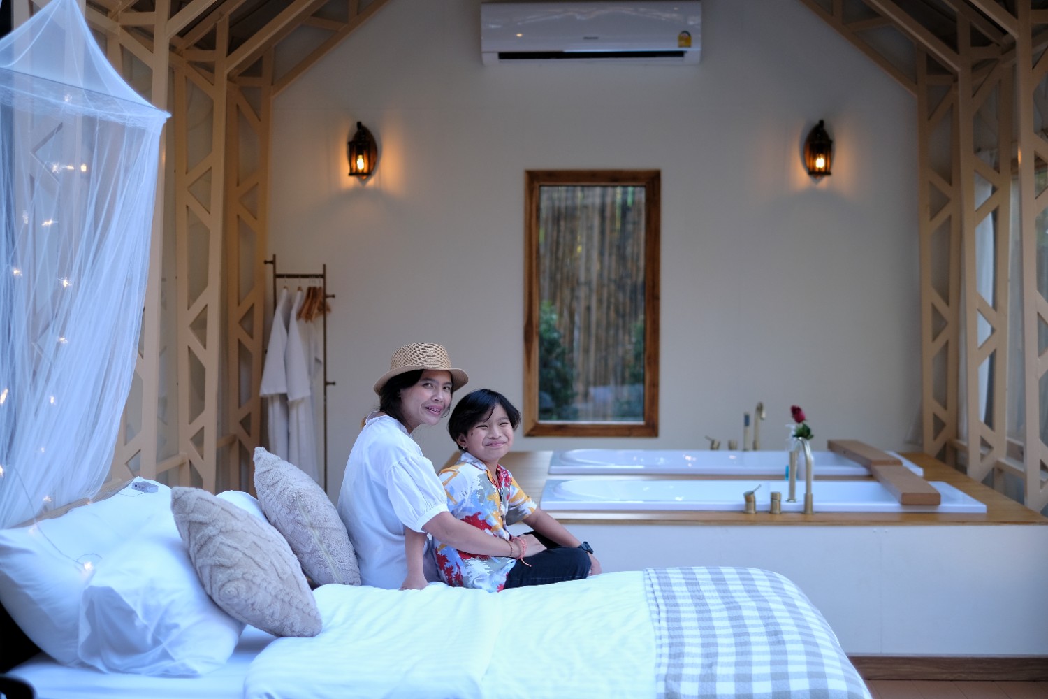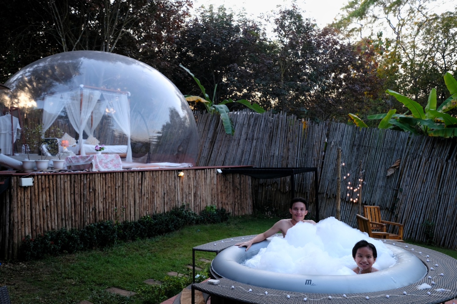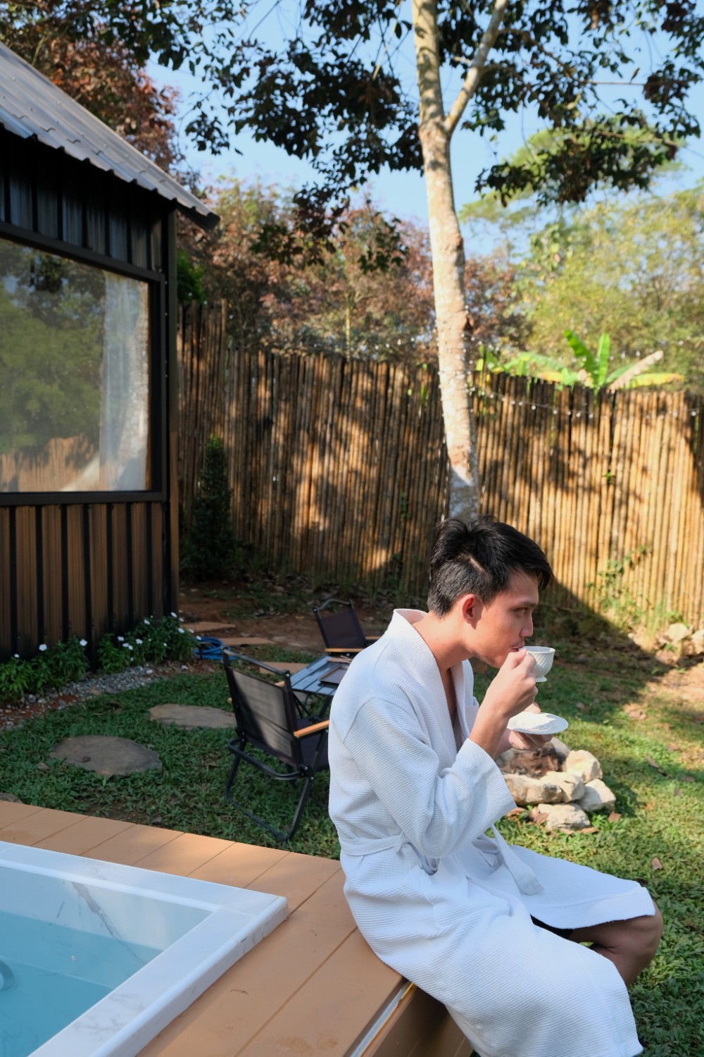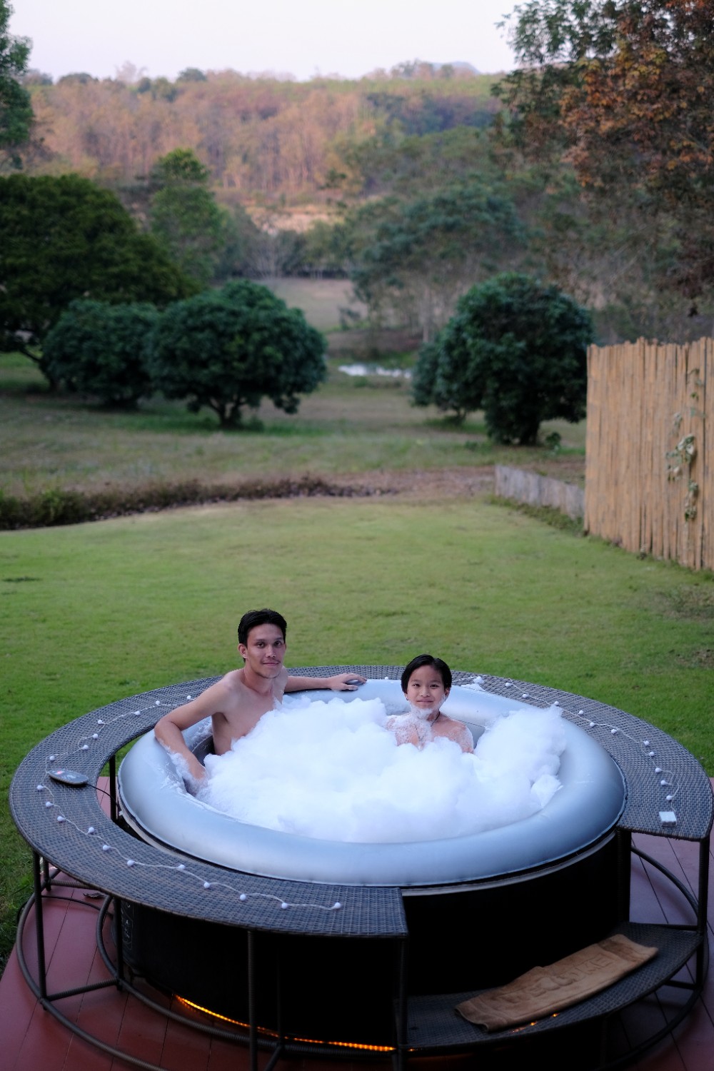 โดมใส สวยงาม มีตาข่าย , อ่างจากุซชี่พร้อมระบบตีฟอง และพื้นที่สนามหญ้าส่วนตัววิวลำธาร