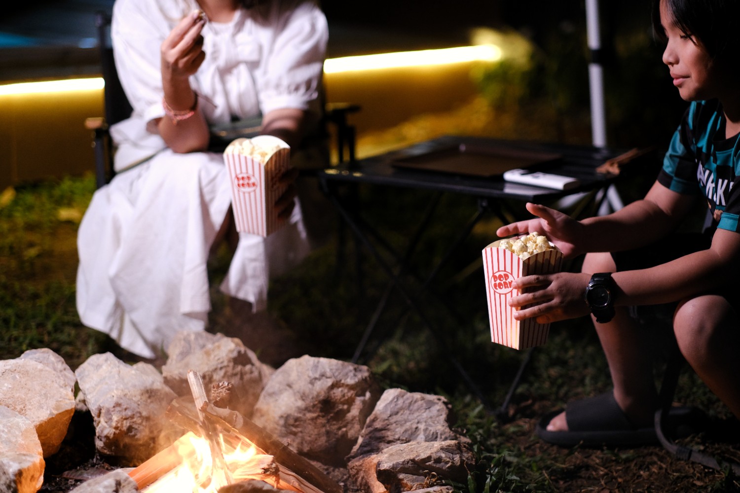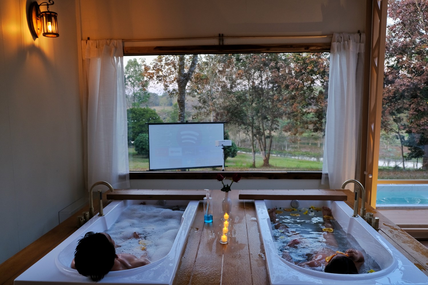 มีบริการโปรเจคเตอร์ สามารถเชื่อมต่อ YouTube , Netflix ดูหนัง ฟังเพลงท่ามกลางธรรมชาติได้ชิลล์ๆ เอาป๊อปครอนมานั่งทานด้วย ฟีลกู๊ดเลยแหละ