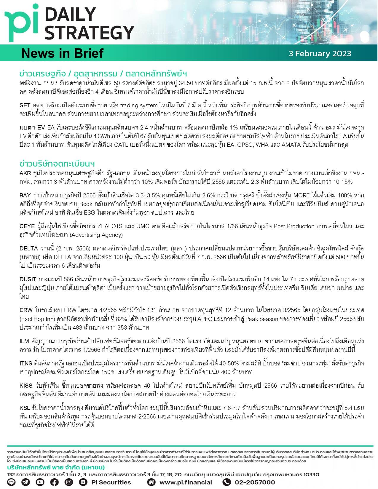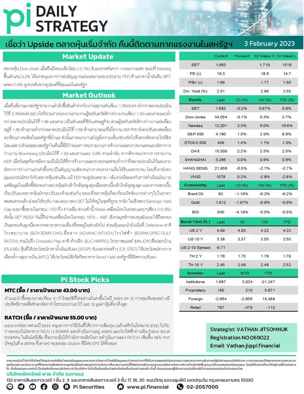 3.ปัจจัยสำคัญสัปดาห์หน้า ได้แก่ เงินเฟ้อไทย, เงินเฟ้อจีน, GDP 4Q65 ของอังกฤษ และงบ 4Q65