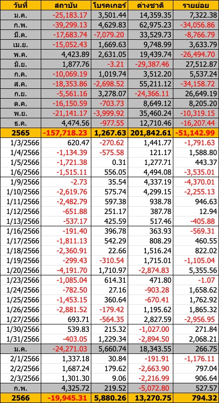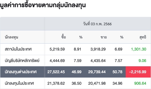 Sinthorn Summary 3/2/2566 : ต่างชาติขายสุทธิ -2,216.99 ลบ.