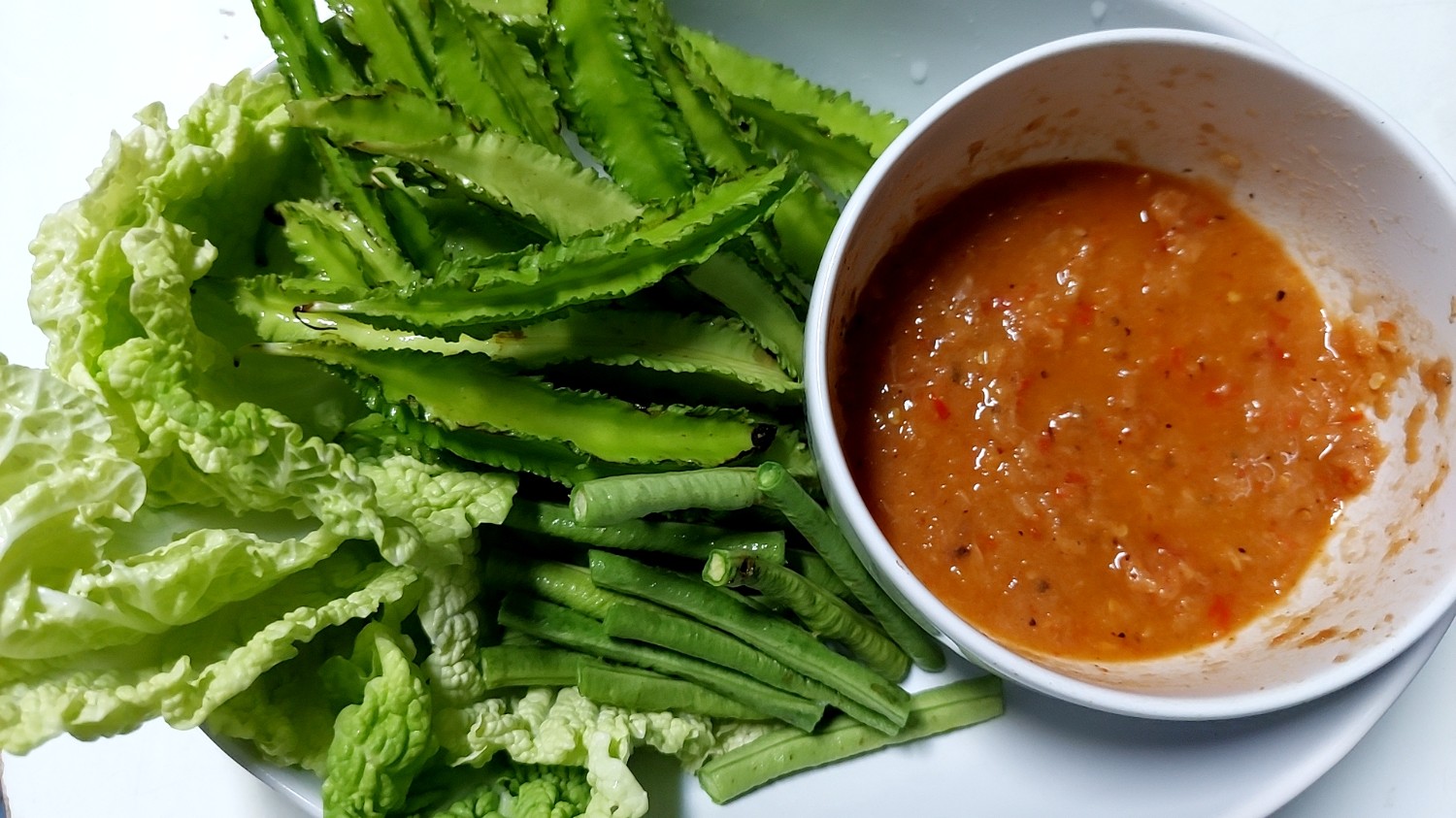 น้ำชุบหยำ (น้ำพริกโจร) ผักลวกกะทิ อาหารปักษ์ใต้