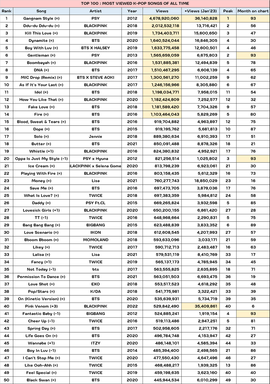 TOP 100 : MOST VIEWED K-POP SONGS OF ALL TIME