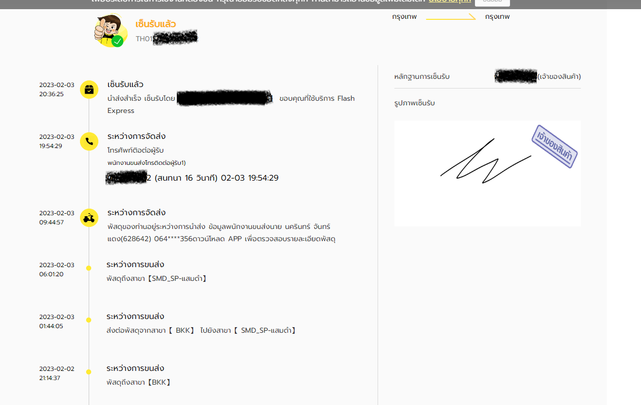 หลังจากนั้นก็บอกว่าจะจัดส่งในวันถัดไป พอวางสายปุปก็เปลี่ยนจาก กำลังจัดส่ง เป็นจัดส่งสำเร็จและมีลายเซ็นผู้รับ อย่างครบถ้วน