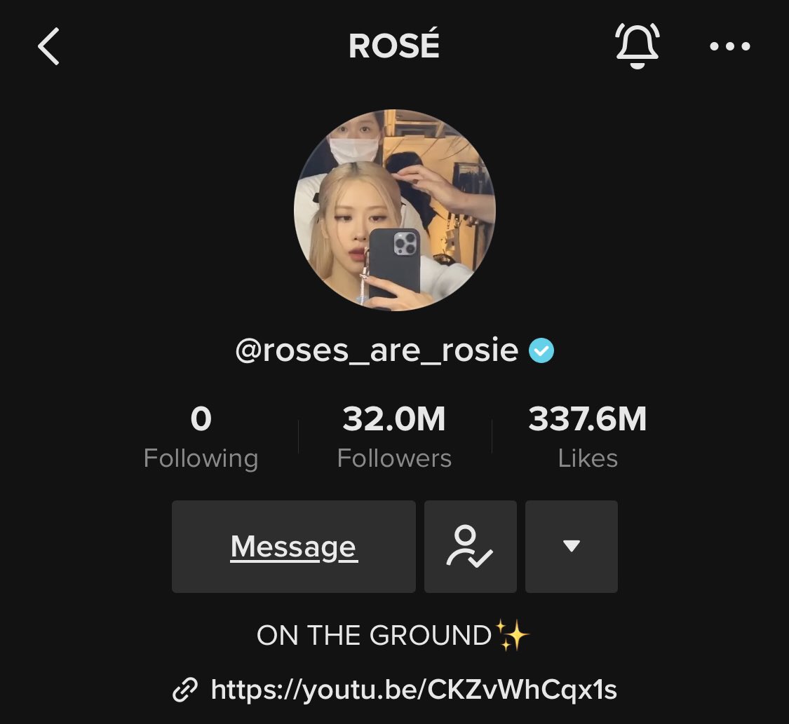 ROSÉ ultrapassou a marca de 32 milhões de seguidores no tiktok.