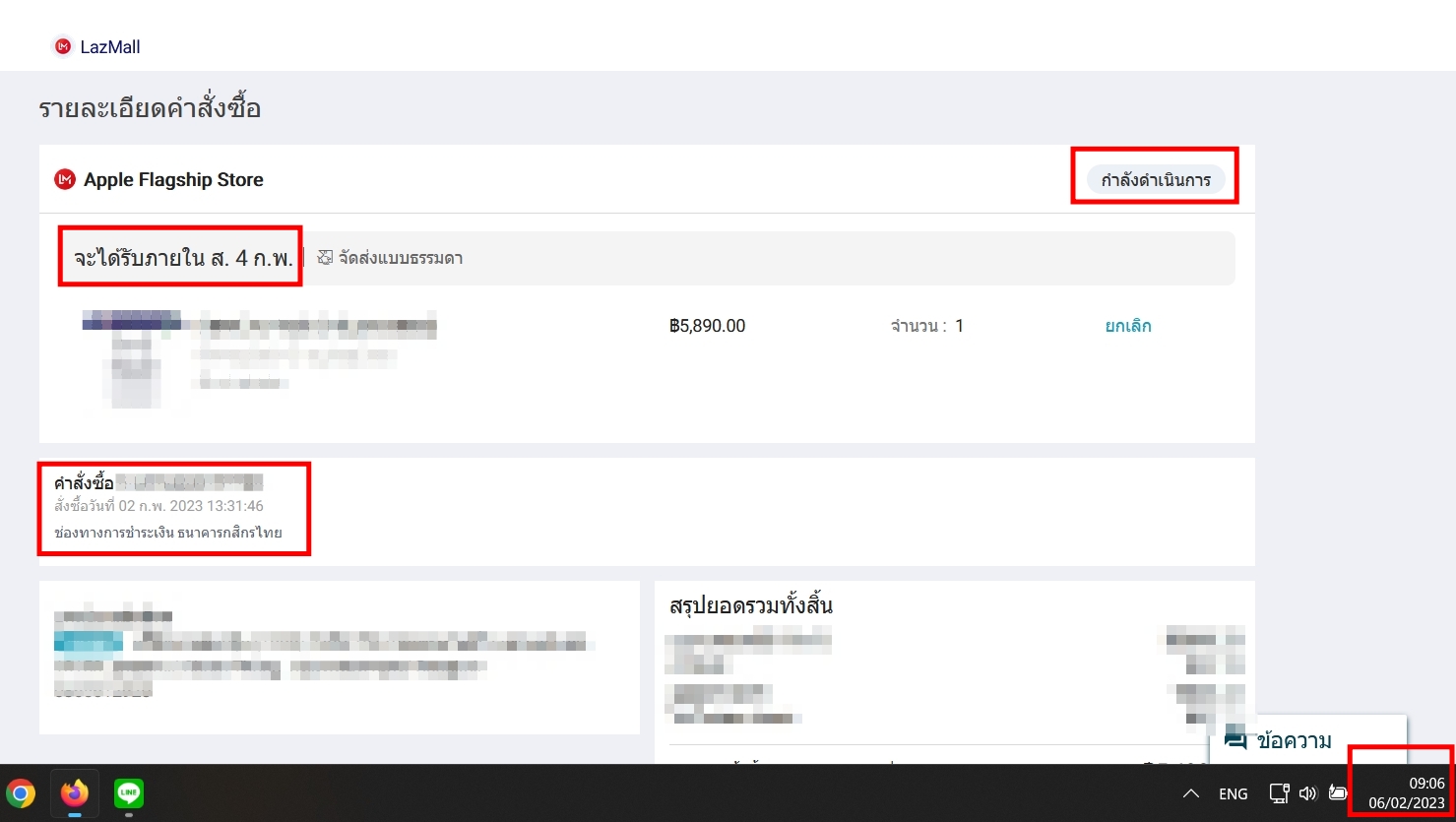 สั่งไปวันที่2 พร้อมชำระเงินทันที สถานะขึ้น กำลังดำเนินการ และขึ้นว่าผมจะได้รับสินค้าภายในวันที่4