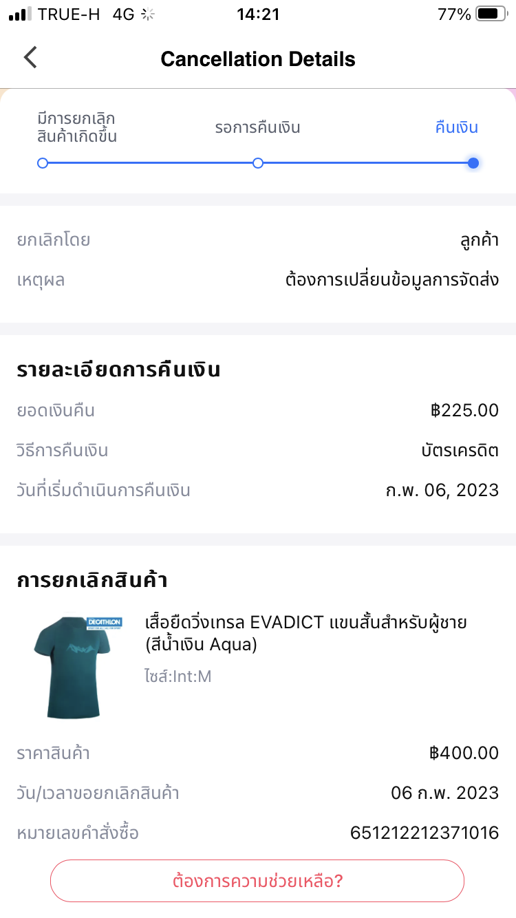 3. เราจึงทำการกดยกเลิกสินค้าเพื่อที่จะสั่งสินค้าใหม่อีกครั้ง ซึ่งก็ยกเลิกสำเร็จ