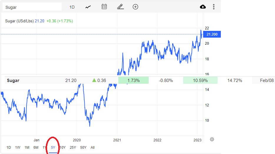 น้ำตาลแข็งโป๊กจ่อทำนิวไฮในรอบ 6 ปี ราคาย่อแล้วทำไฮใหม่ตลอด สวนทางกับคอมโมนิตี้อื่นๆ ทั่วโลกที่เป็นขาลง ปีทองของน้ำตาล