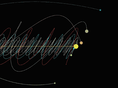 ส่วนภาพนี้แสดงถึงลักษณะการเคลื่อนที่ของระบบสุริยะ