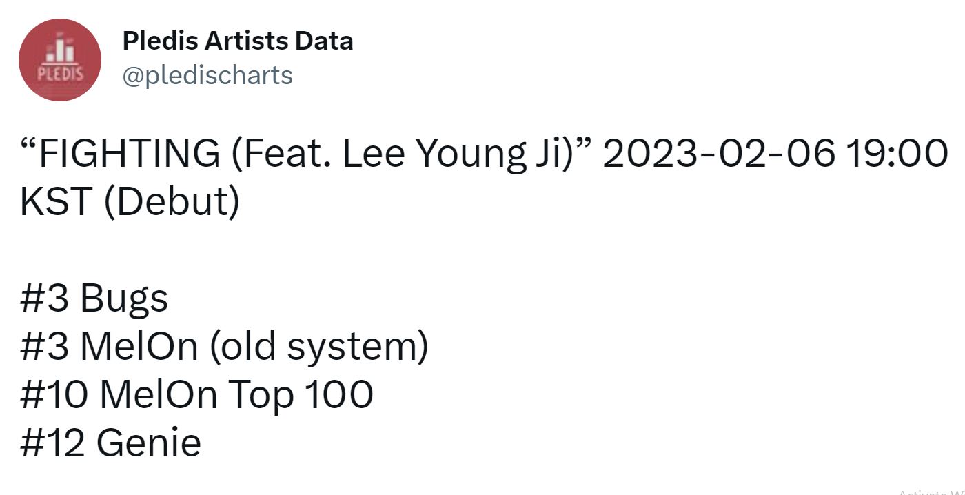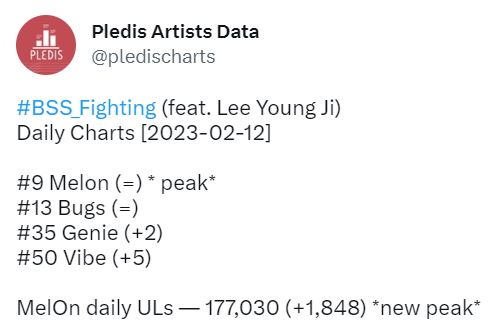 เพลง Fighting เดบิวต์ที่ 10 Melon Top 100 เป็นอันดับที่สูงสุดของเพลง SEVENTEEN ทั้งหมด