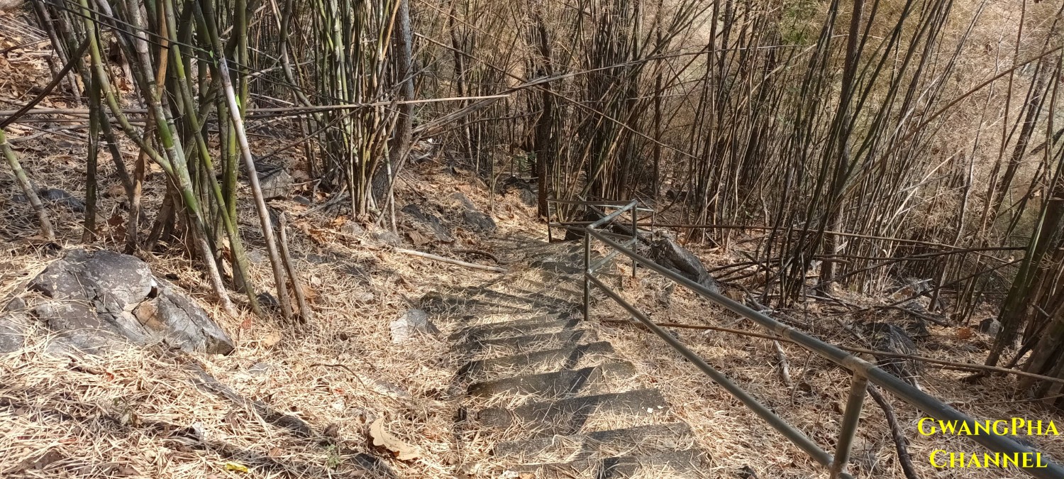 ซึ่งพวกเรา เดินในถ้ำเสร็จก็เดินขึ้นยอดเขากันต่อ ใช้เวลาเดินขึ้นแบบไม่พัก ประมาณ 8 นาที เส้นทางจะเป็นบันได มีป่าไผ่ ในบริเวณ บนยอดก็จะเมีพระเจ้าทันใจ และจุดชมวิวป่าแม่ออน