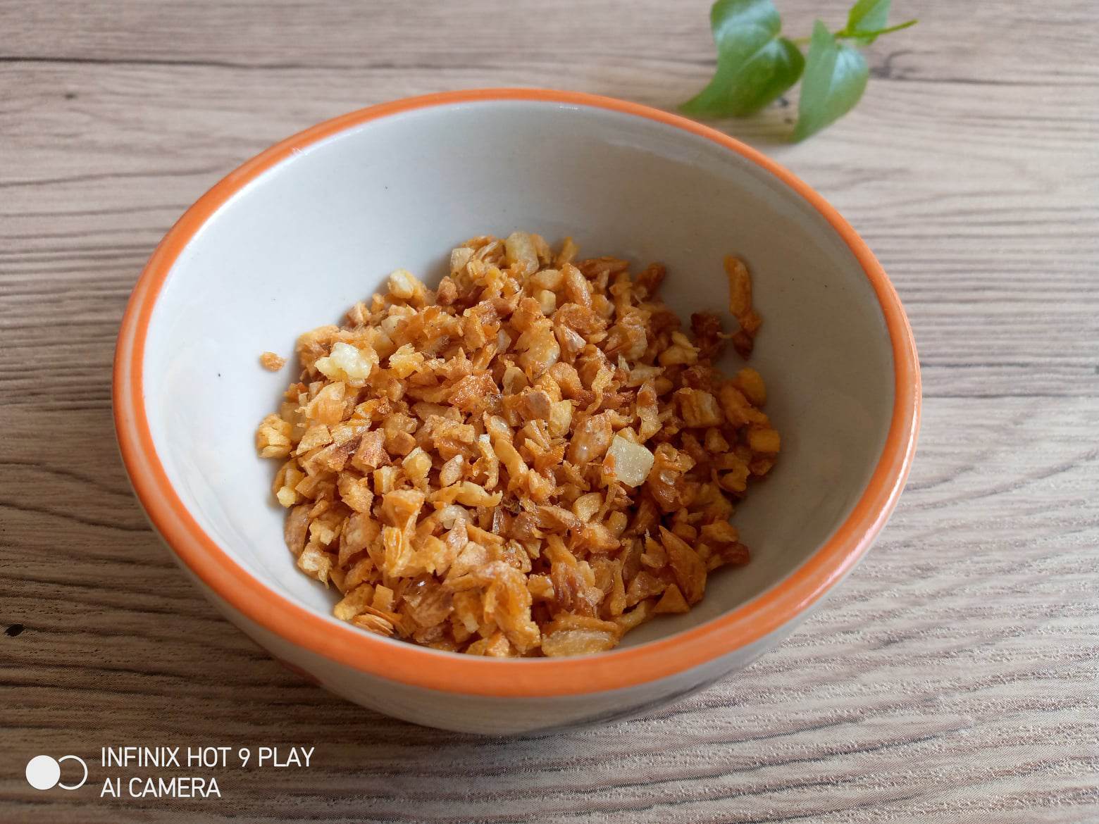 ตัวกระเทียมเจียว ไม่มีอะไรมากค่ะ แค่นำกระเทียมสับไปเจียวกับน้ำมัน
