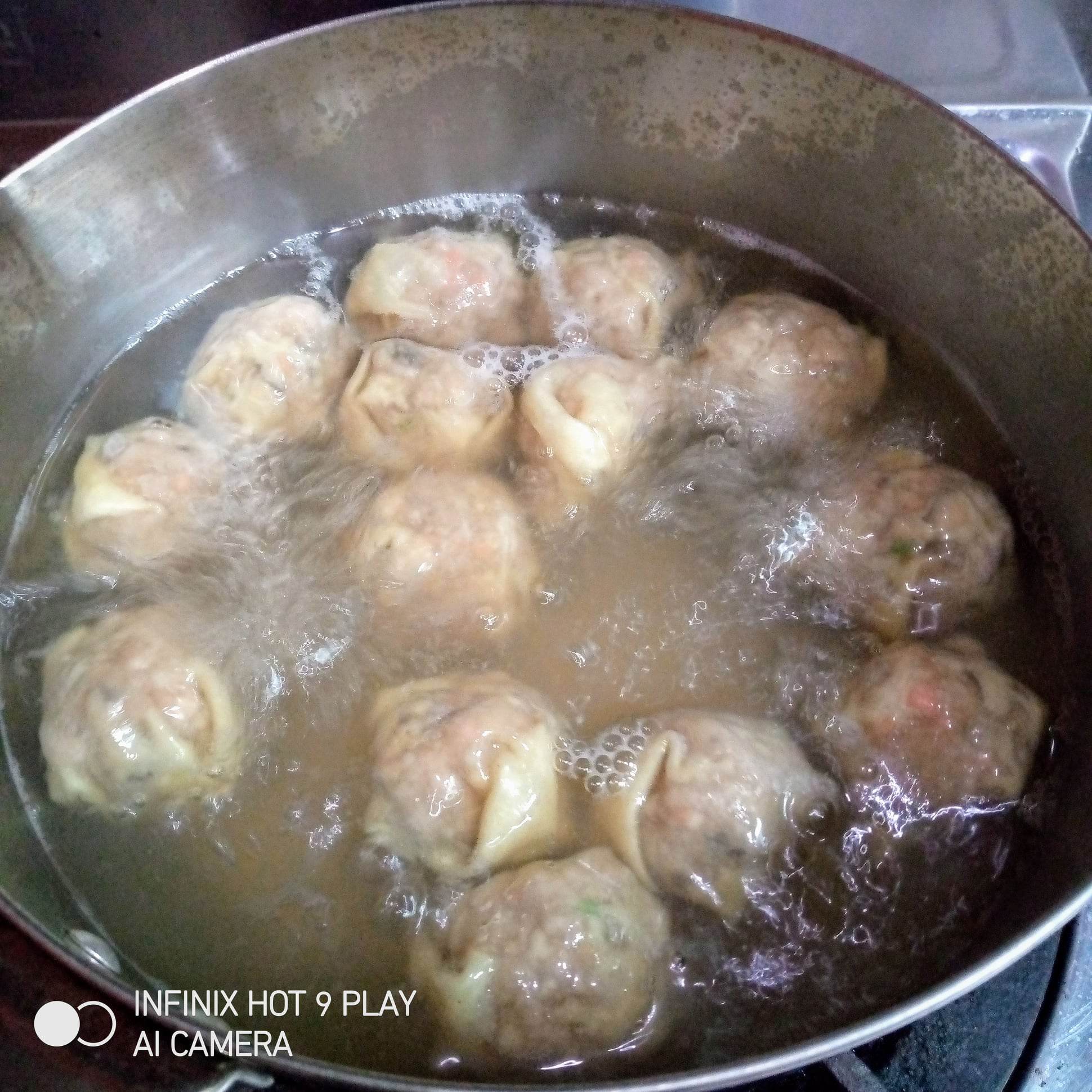หากน้ำเดือดแล้ว ทำการหย่อนเกี๊ยวที่เราห่อไว้ลงไป