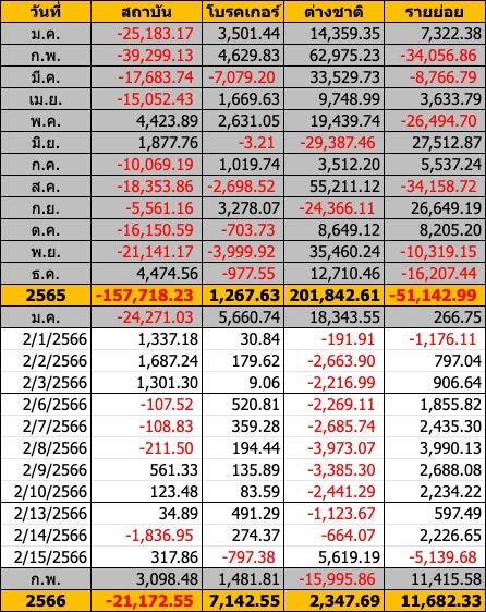 Sinthorn Summary 15/2/2566 : ต่างชาติซื้อสุทธิ 5,619.19 ลบ.