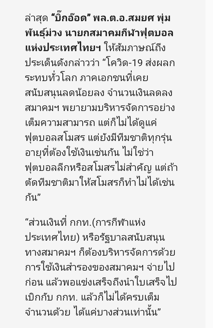 บิ๊กอ๊อดแจง " ถ้ามัวให้เงินสโมสรแต่ทีมชาติแข่งไม่ได้ก็เสียชื่อประเทศเช่นกัน"