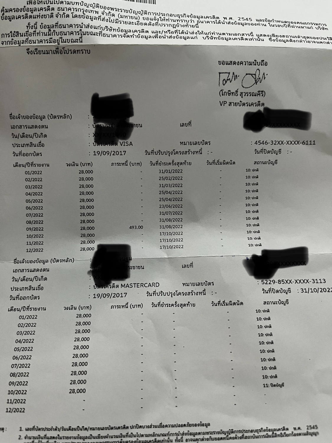จนผ่านมาหลายเดือนผมก็ยังเห็นบัตรใบเดิมค้างอยู่ในแอพของธนาคารกรุงเทพอยู่ ตอนแรกผมคิดว่าเป็นเพราะกระบวนการอาจจะใช้เวลานานแต่เปล่าเลย จริงๆ คือ CC ไม่ได้ยกเลิกบัตรให้ผมครบทุกใบ คือทาง CC ไปยกเลิกบัตรที่ผมไม่เคยเปิดใช้ แต่ไม่ได้ยกเลิกใบที่ผมอยากยกเลิกไปด้วย ผมเพิ่งมารู้เรื่องนี้หลังปีใหม่เพราะมีจดหมายแจ้งนำส่งข้อมูลให้เครดิตบูโรแล้วมีแจ้งว่าสถานะบัตรใบนั้นว่ายังปกติอยู่(10) ส่วนอีกใบที่ไม่ได้เปิดใช้ขึ้นสถานะปิดบัญชี(11)