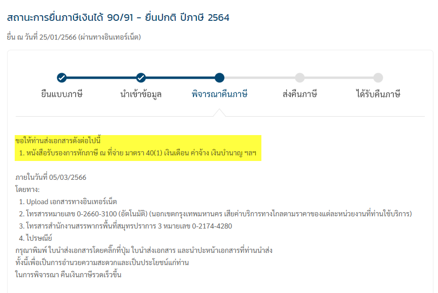 สอบถามการยื่นภาษีย้อนหลัง