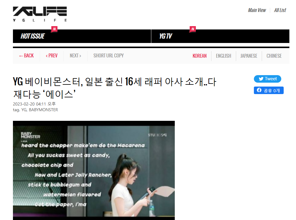 (บทความของ YG Life) YG Baby Monster ขอแนะนำ Asa แร็ปเปอร์วัย 16 ปีจากญี่ปุ่น... 'Ace' ผู้มากความสามารถ