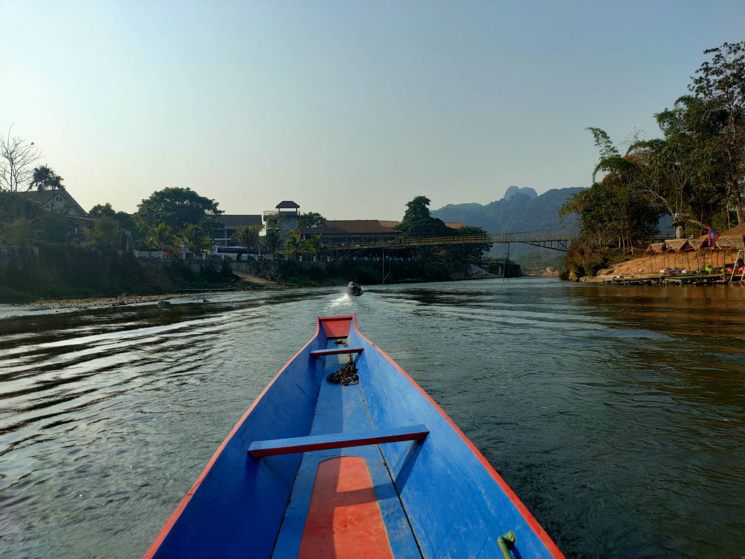 เช้าวันใหม่ เริ่มต้นจากการไปล่องเรือชมวิว นั่งเฉยๆ ชิลๆ ติดต่อเรื่อได้แถวๆ ริมน้ำ ลำละ 150000 กีบ นั่งได้ 2 คน จากนั้นก็เหมารถเอา ไปประมาณ 3 ที่พอ เพราะเพื่อนๆ อยากชมวิวเป็นหลัก 555 ราคาเหมาประมาณ 4 ชั่วโมงก็ 400000 กีบ ไปบลูลากูน 1-2 และถ้ำนางฟ้า แค่นี้