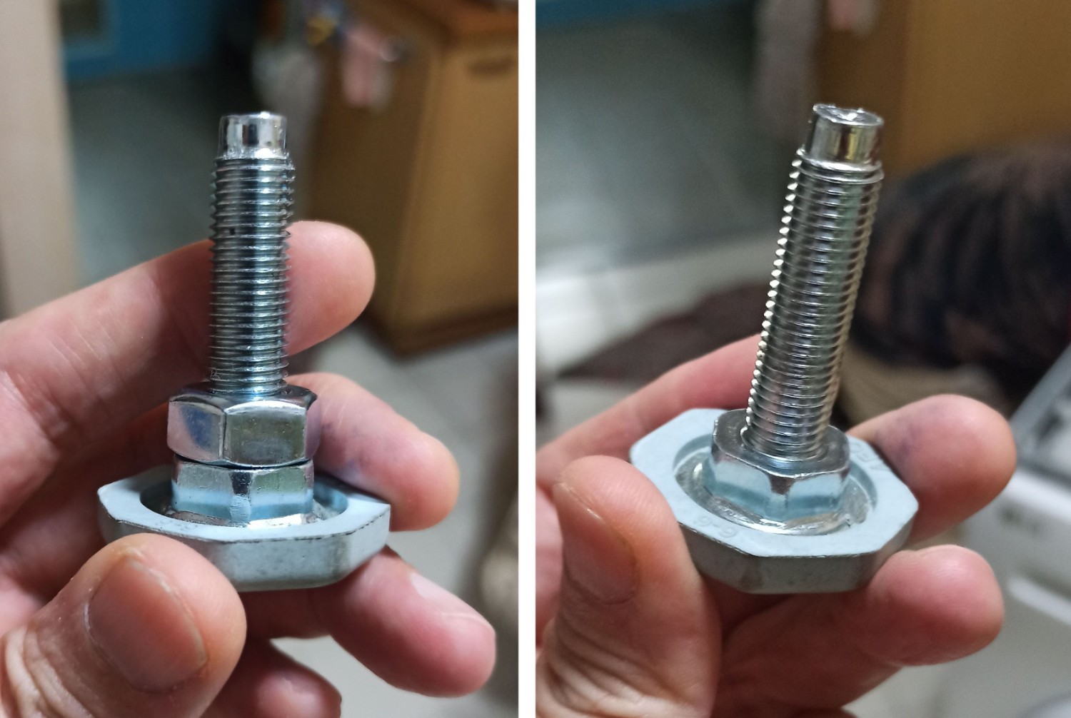 ขารองผมถอดน๊อตออก 1 ตัว เพื่อให้ขารองใส่ชิดกับตัวเครื่องเพิ่มขึ้นอีกหน่อย ความสูงจะได้ลดลง