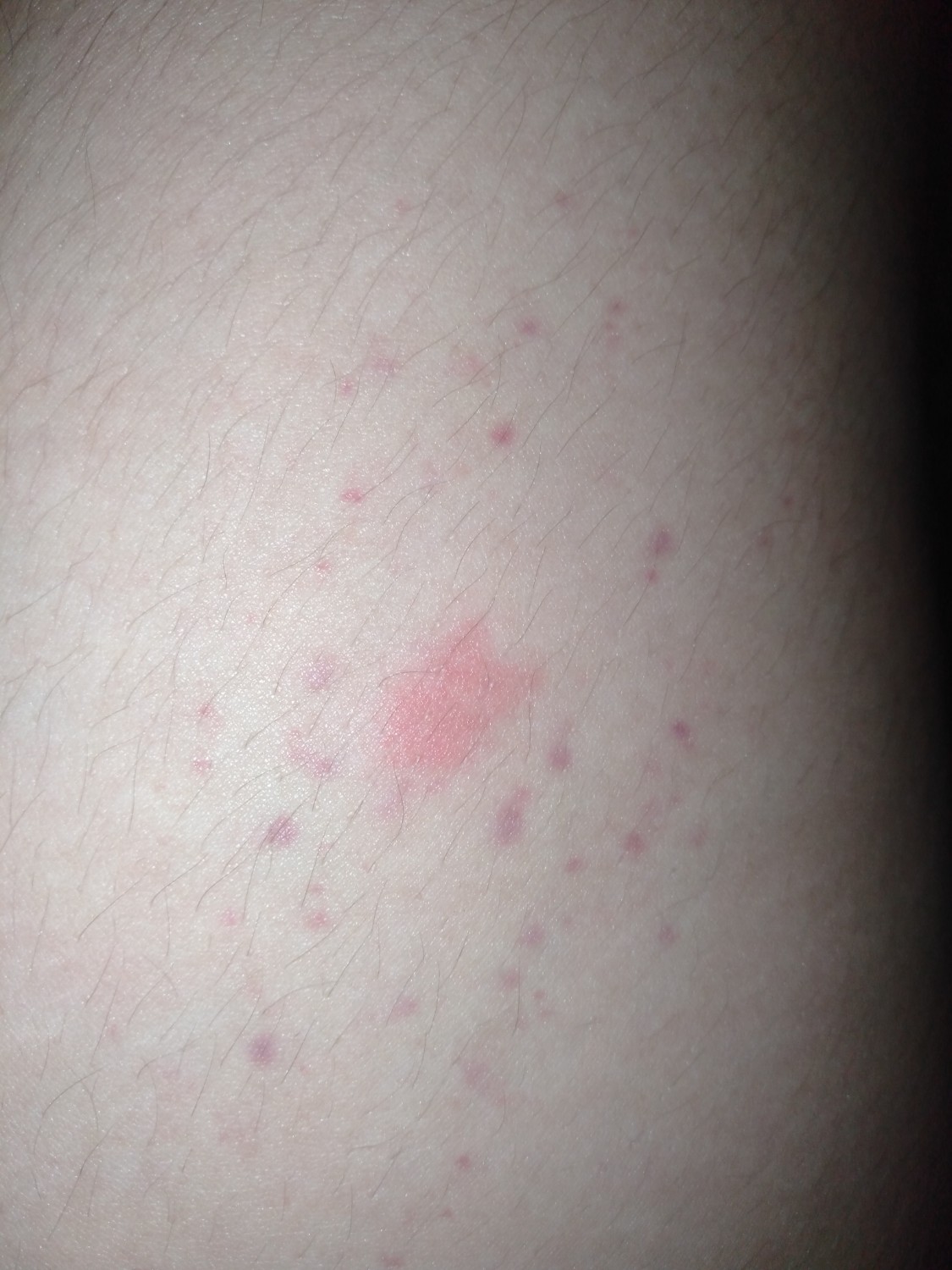 (มีรูป) จำได้ว่าเมื่อคืนเรานั่งทับนาฬิกาตัวเองเเบบนานมากๆเเล้วพอเราไปอาบน้ำไอผื่นนี้ก็ขึ้นมาตรงต้นขาอ่ะค่ะ ไม่รู้ว่าไปโดนตัวอะไรกัดเข้าตอนไหน ไม่เเต่ก็ค่อยคันเท่าไหร่ มันสงสัยอะคะ วอนผู้รู้ช่วยหน่อยนะคะ