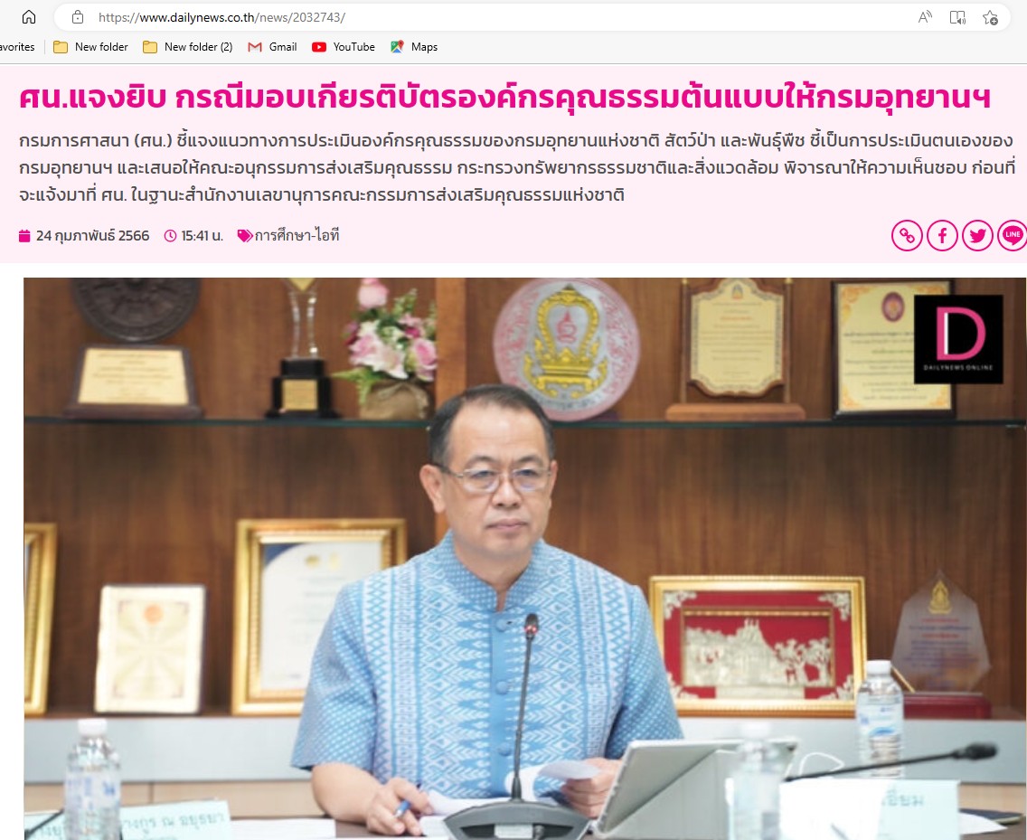 กรมการศาสนาแจงยิบ กรณีมอบเกียรติบัตรองค์กรคุณธรรมต้นแบบให้กรมอุทยานฯ