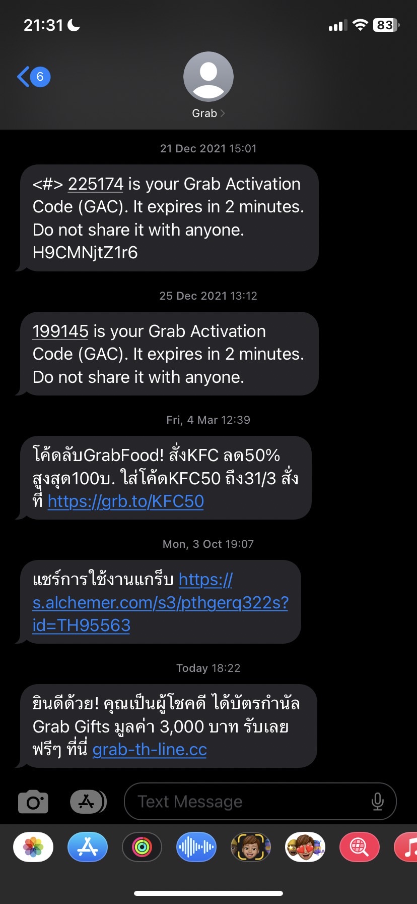 ซึ่งปกติผมจะระวังมาก แต่เห็นว่าส่งจากข้อความจาก Grab เลย ก็เลยคิดว่าคงอาจจะได้จริงๆมั้ง เลยลองกดดู