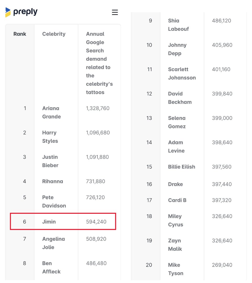 จีมิน BTS ติดอันดับ 6 ของรอยสักคนดังที่ถูกค้นหามากที่สุด บน Google