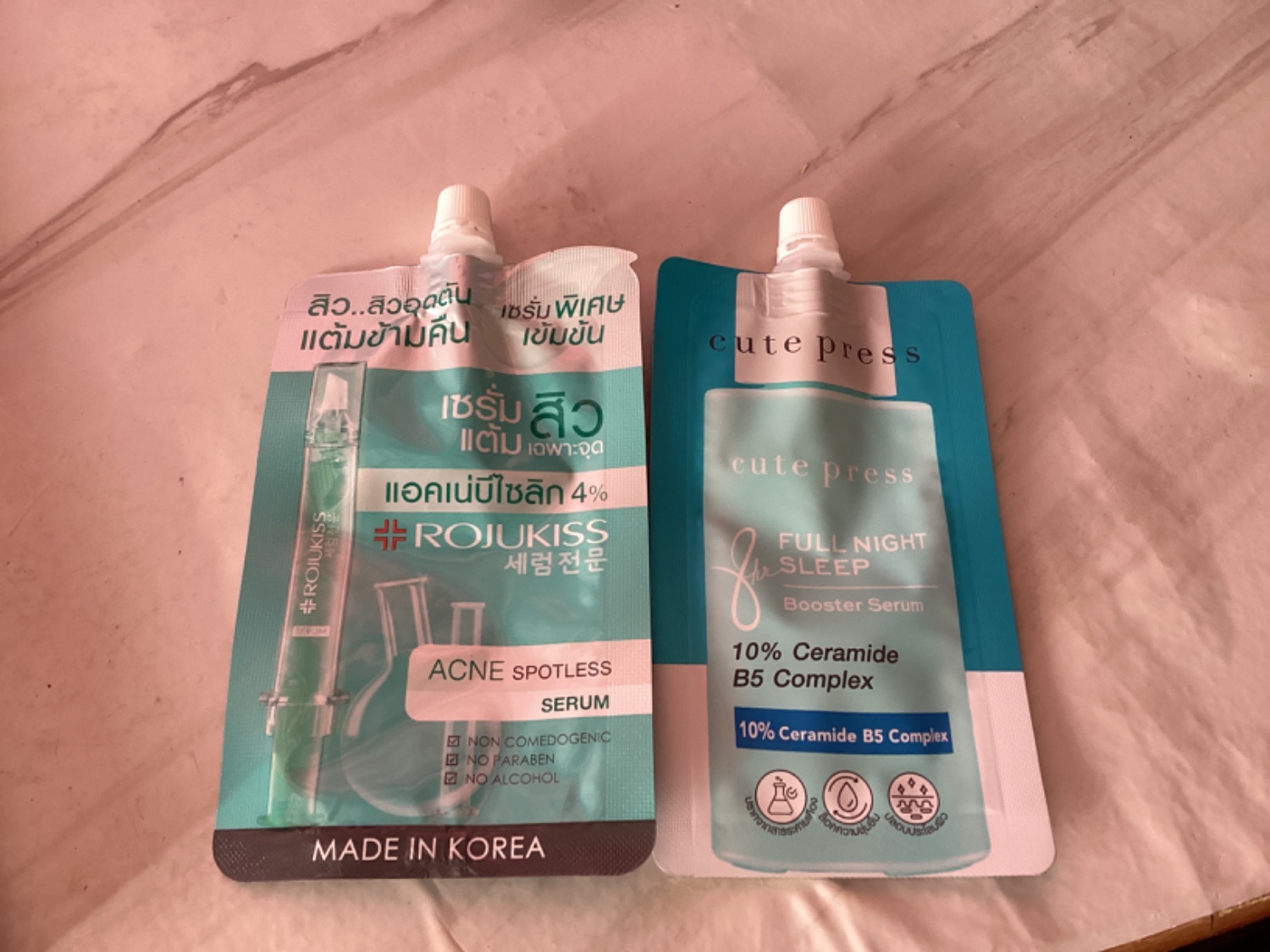 เคลียร์โน๊ตซองฟ้าสูตรลดสิวกับโรจูคิสซองชมพูไวน์ พอเลส และมอยเจอร์ไรเซอร์เคลียร์โน๊ตควรลงอันไหนก่อนคะ