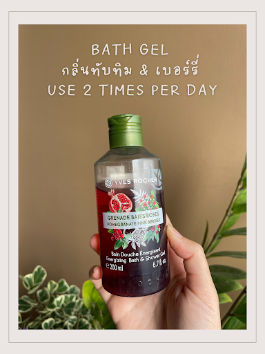 มาเริ่มกันที่การทำความสะอาดขั้นต้นก่อน ตั้งแต่ shower gel กันเลยค่ะ เราใช้ของ Yves Rocher Energizing Bath & Shower Gel กลิ่น Pomegranate Pink Berries ตัวนี้จะให้ความหอมแบบเฟรช ๆ จากทับทิมสีชมพูและเบอร์รี่ จะรู้สึกสดชื่นเวลาได้กลิ่น จริง ๆ กลิ่น Olive lemongrass ก็หอมนะ ได้ความอโรมานิด ๆ ใช้ทุกวันเช้า-เย็น ผิวจะมีกลิ่นอ่อน ๆ ของครีมอาบน้ำติดมาด้วย ไม่ทำให้ผิวแห้งตึงเกินไปด้วยเด้อ