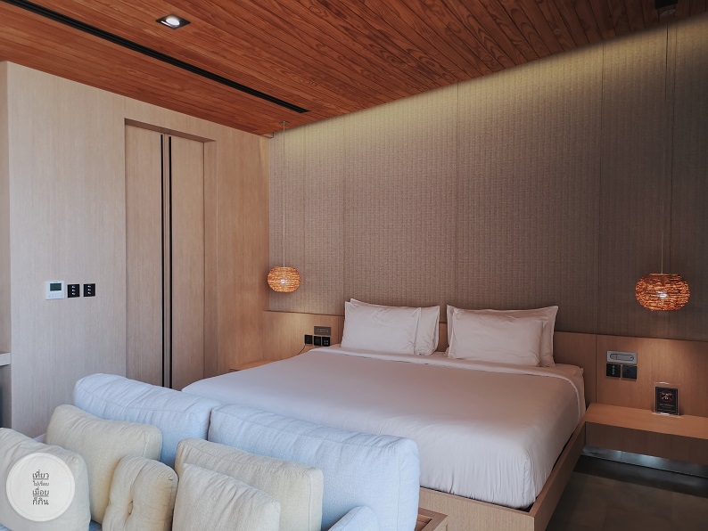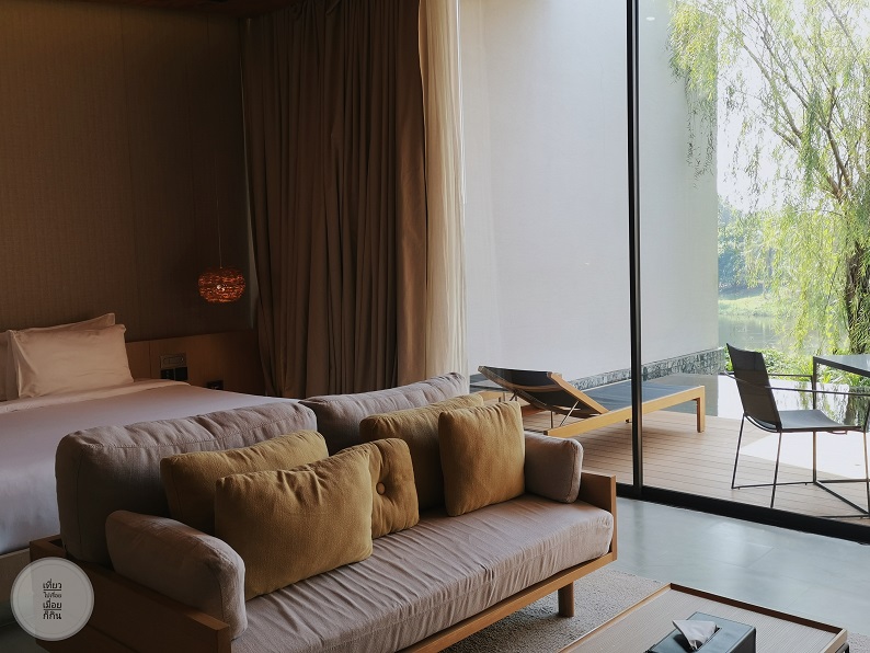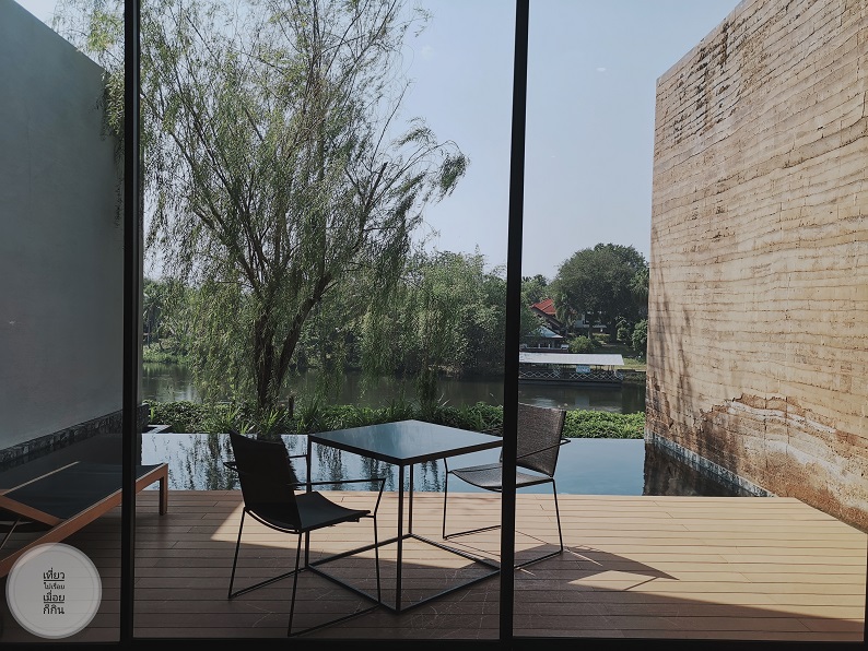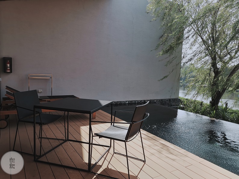 🛌 ห้องที่เราพักจะเป็น One Bedroom Pool Villa มีสระว่ายน้ำแบบ Infinity Pool มองเห็นวิวแม่น้ำแบบชิลๆ ภายในห้องมีอุปกรณ์พื้นฐานครบ ที่แปลกกว่าที่อื่นๆคือมีที่รองสำหรับรีดผ้าด้วย
