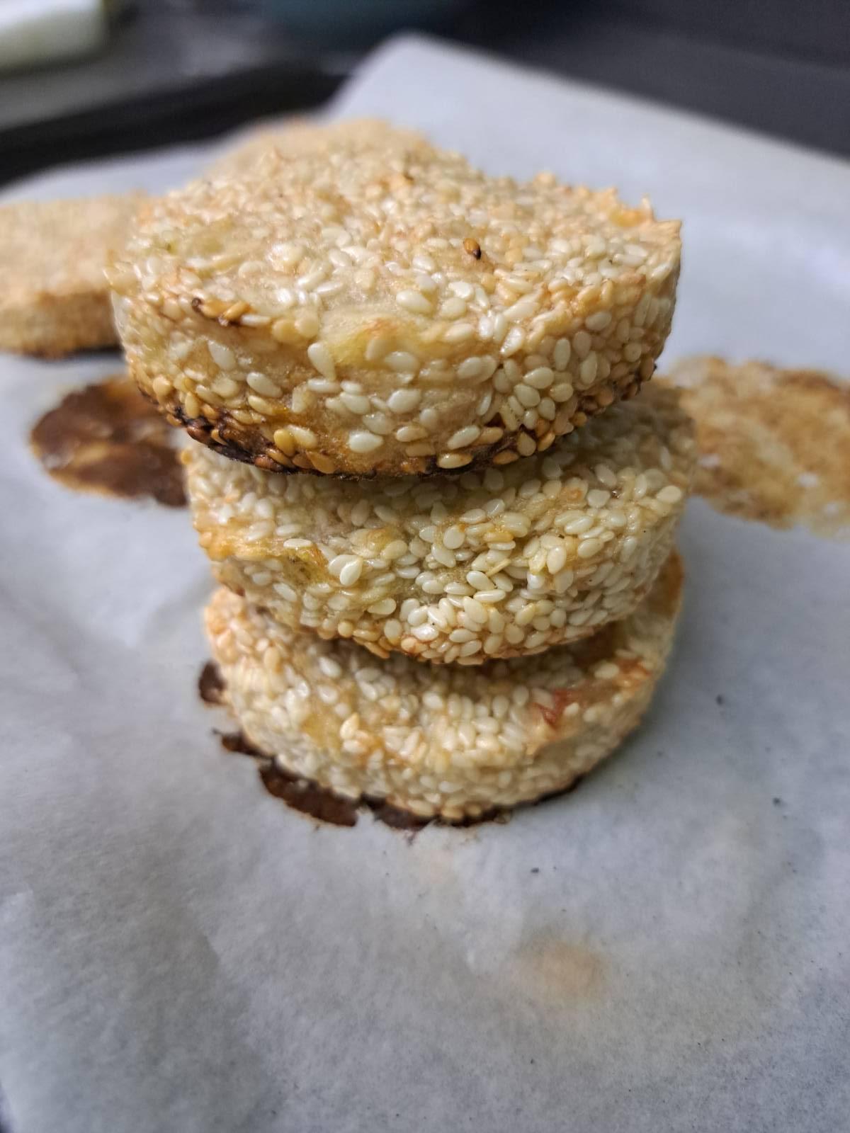 ใช้เวลาอบประมาณ 15-20 นาที แค่นี้ก็เรียบร้อย ใครอยากได้ความหอมเพิ่ม คั่วงาก่อนผสมได้เลย ของแอนไม่ได้คั่วนะคะ ผสมอบเลย