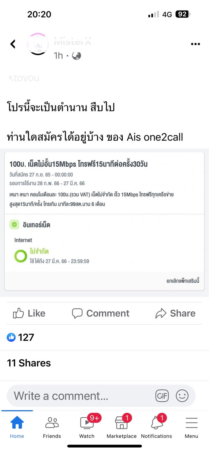 คือเราใช้โปรเน็ตของ AIS อยู่ค่ะ เป็นแพ็คเกจ เดือนละ 200บ.(รวมVAT) เน็ต 25GB(เร็ว 6Mbps) หลังจากนั้นเร็ว 384kbps โทรฟรีทุกเครือข่าย 50 นาที พร้อม AIS SUPER WiFi ไม่จำกัด นาน 6เดือน พอใช้เน็ตครบแล้วความ