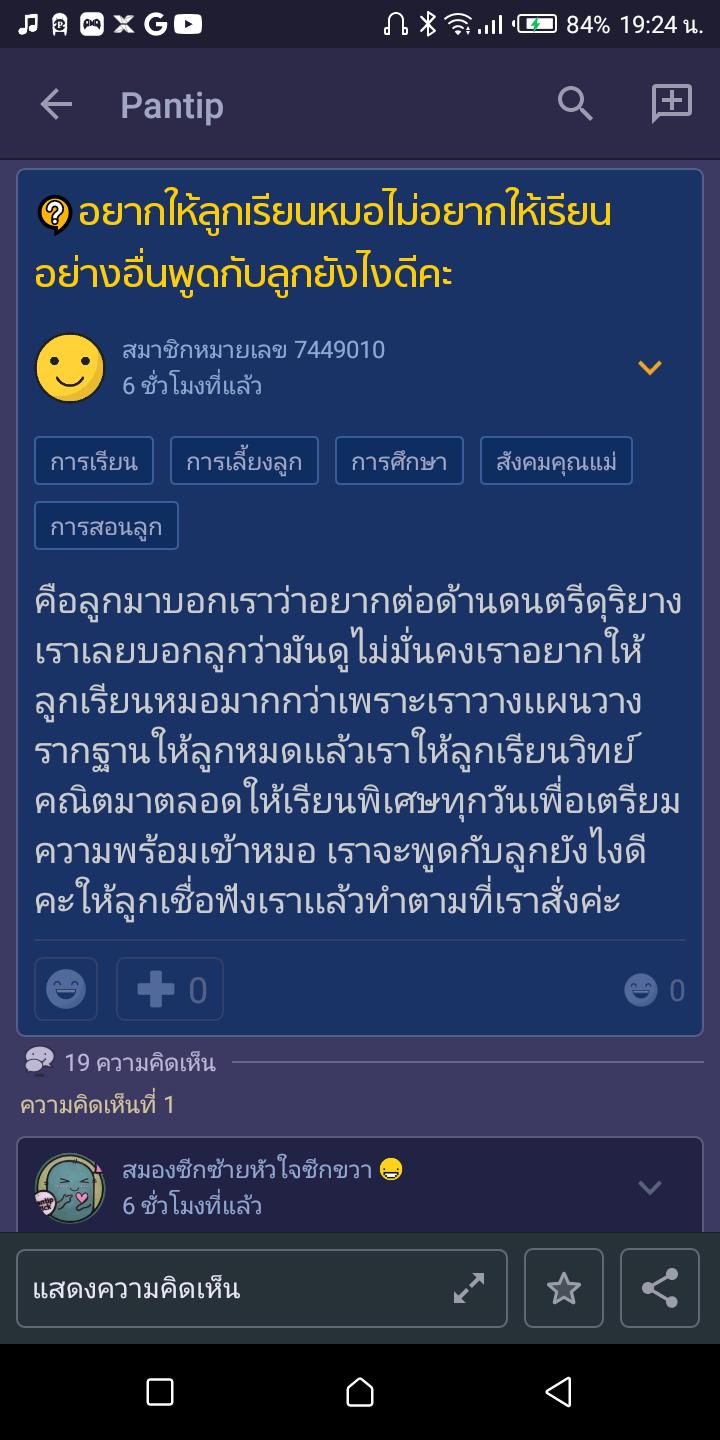 คือในกระทู้นั้นชัดเจนว่าในเมื่อลูกของท่านไม่อยากเป็นหมอ ท่านยังจะไปบังคับลูกเรียนหมออีก มันถูกต้องแล้วเหรอ? ไม่มีพ่อแม่คนใดในสมัยนี้เขาบังคับให้ลูกเป็นหมอ เป็นทหาร เป็นตำรวจกันหรอก มันเอาท์ไปแล้ว