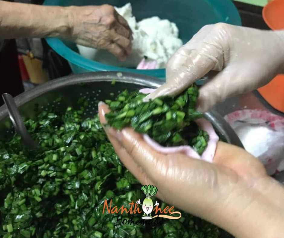 "ตัวไส้ไม่เท่าไหร่ยังเตรียมล่วงหน้าได้ แต่ตัวแป้งต้องทำใหม่ๆทุกเช้า แป้งใหม่แป้งเก่าก็มีผลในการห่อนะคะพี่นัน"
