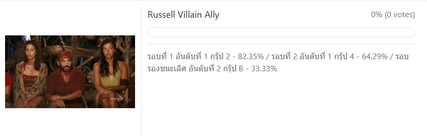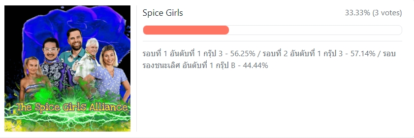 ให้โหวตกรุ๊ปละ 1 พันธมิตรเท่านั้น (พันธมิตรที่มีคะแนนมากที่สุดจะได้รับตำแน่ง Best Survivor Alliance of All Time ครับ)