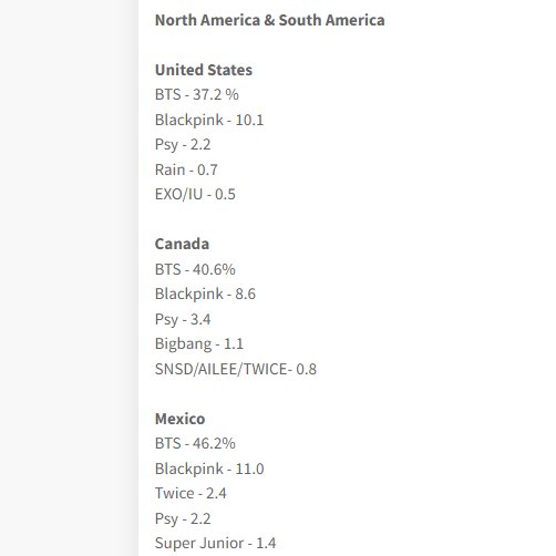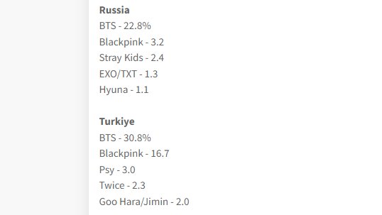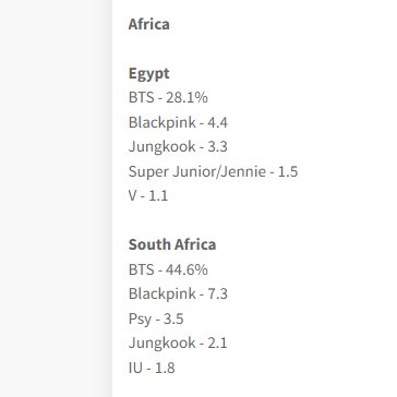อันดับของเมมเบอร์ BTS ที่ได้รับเลือกเป็นศิลปินที่ผู้คนชื่นชอบที่สุดแบ่งตามรายประเทศ