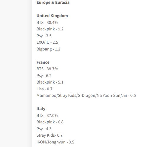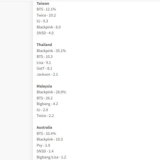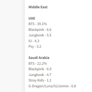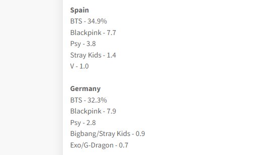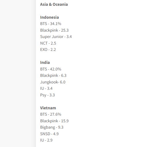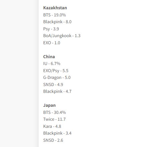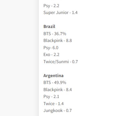 อันดับของ BTS ที่ได้รับเลือกเป็นศิลปินที่ผู้คนชื่นชอบที่สุดแบ่งตามรายประเทศ