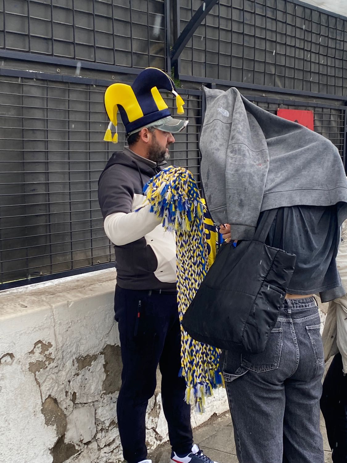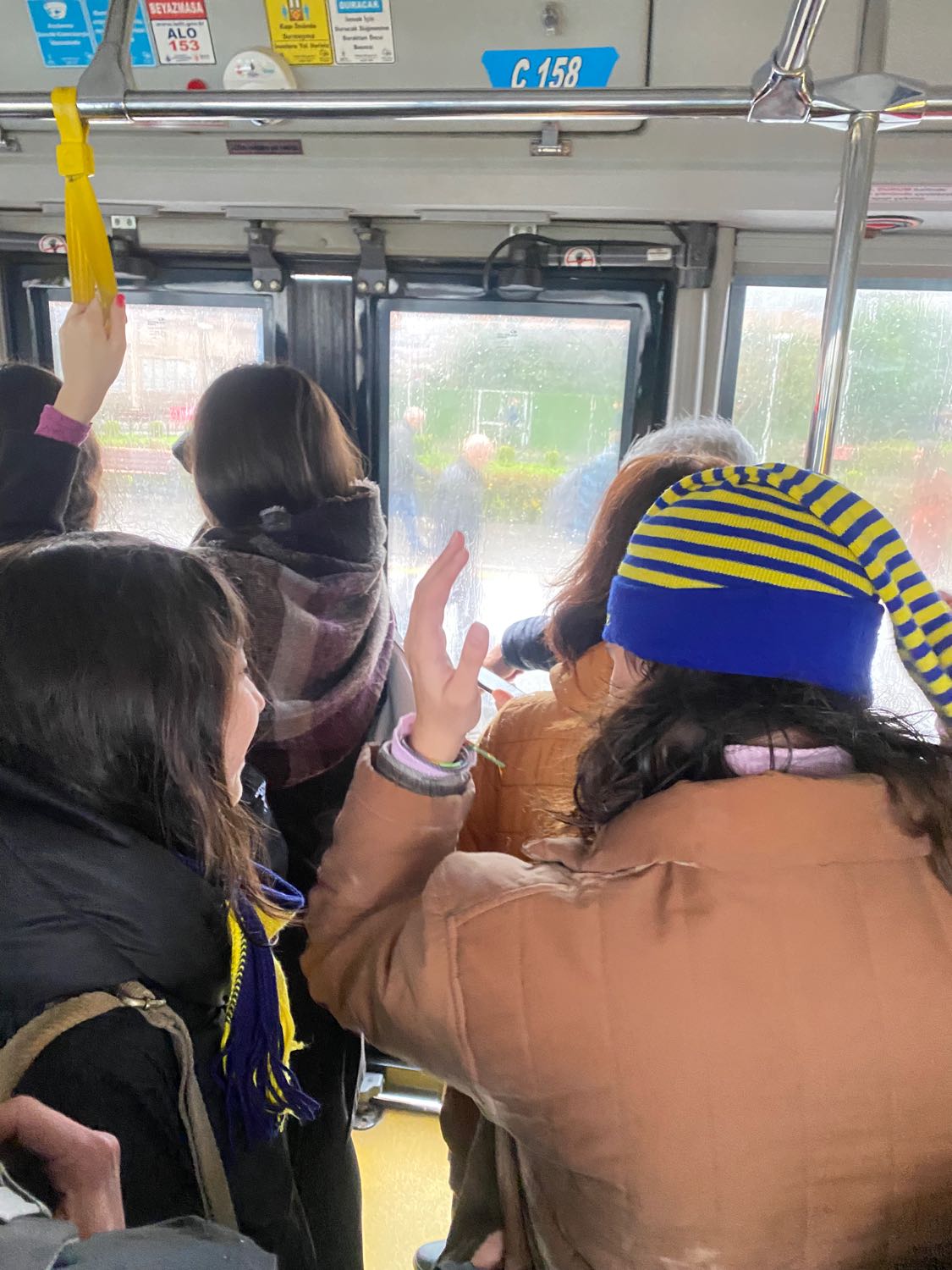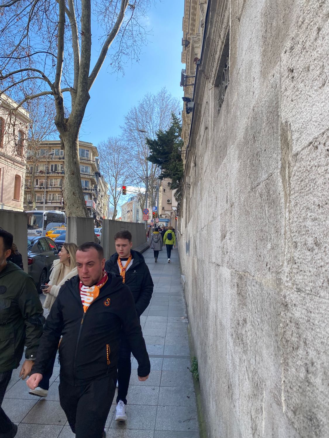 ซึ่งระหว่างทางก่อนมาสนาม เจอคนตุรกีสวมเสื้อผ้า พรอพ ของกาลาตาเดินว่อนเยอะมาก