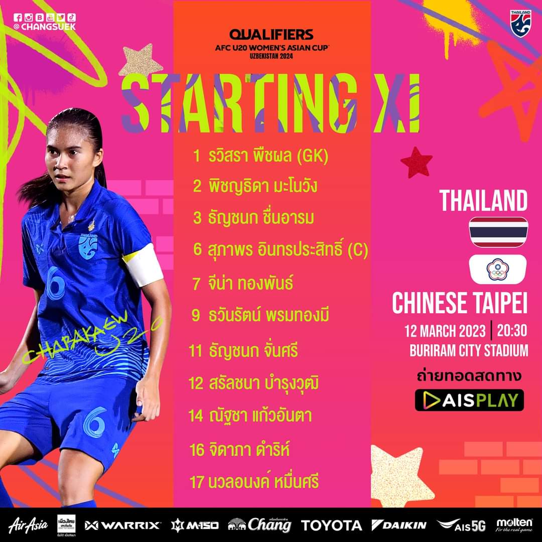 ไทยแลนด์U20 VS ไต้หวันU20 : ศึกชิงตั๋วไปชิงแชมป์เอเซียรอบสุดท้าย