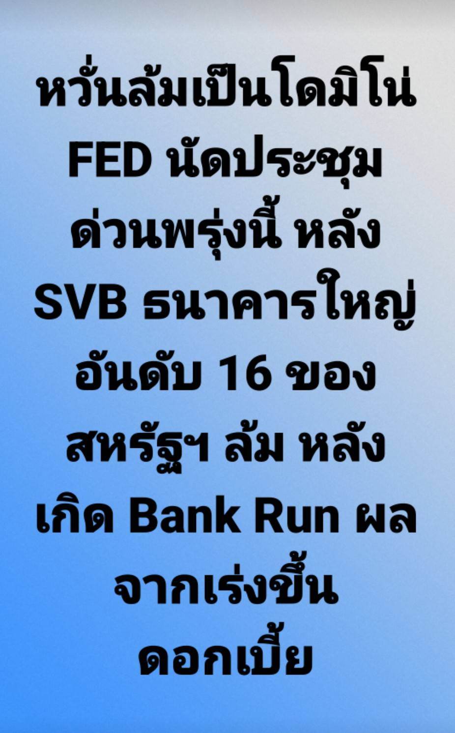 KS : คณะกรรมการเฟดนัดประชุมด่วนวันพรุ่งนี้ (13มีนาคม) ซึ่งจะเป็นการประชุมแบบปิดไม่ถ่ายทอด คาดว่าส่วนหนึ่งเป็นผลจากผลกระทบของ SVB ธนาคารขนาดใหญ่ลำดับ 16ของสหรัฐที่เกิดภาวะ Bank run ขึ้น