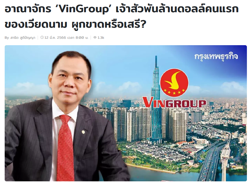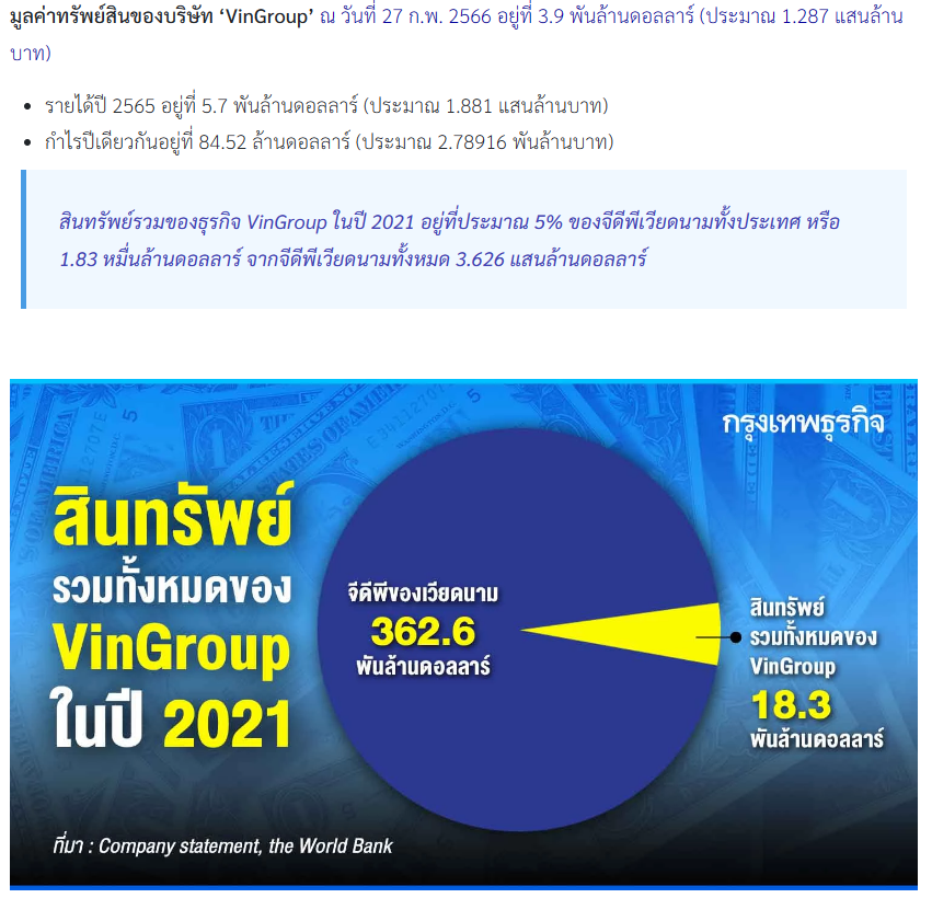 Credit by : อาณาจักร ‘VinGroup’ เจ้าสัวพันล้านดอลล์คนแรกของเวียดนาม ผูกขาดหรือเสรี? (bangkokbiznews.com)