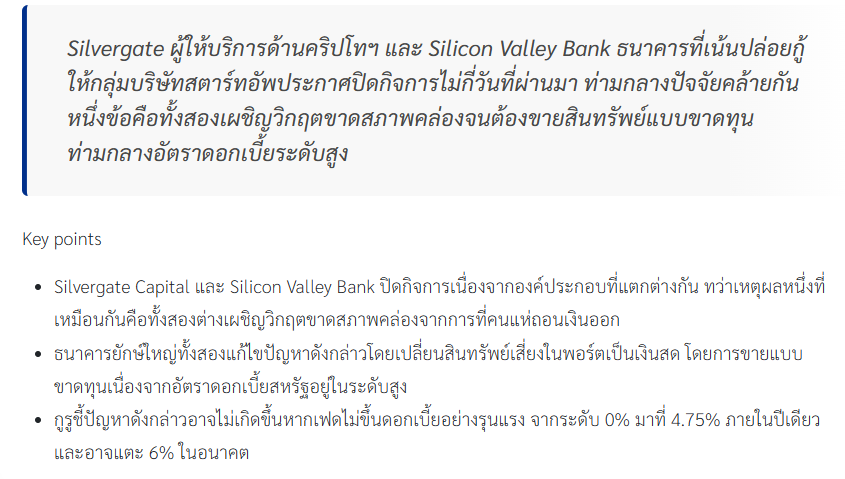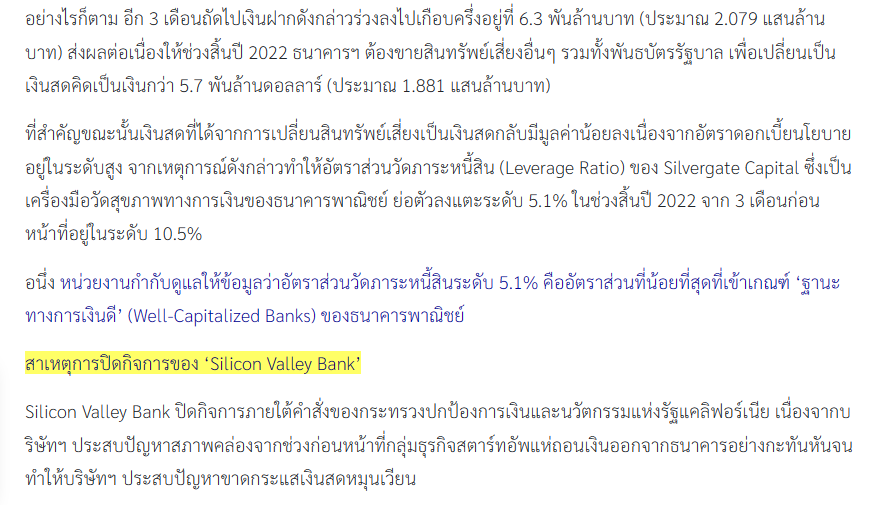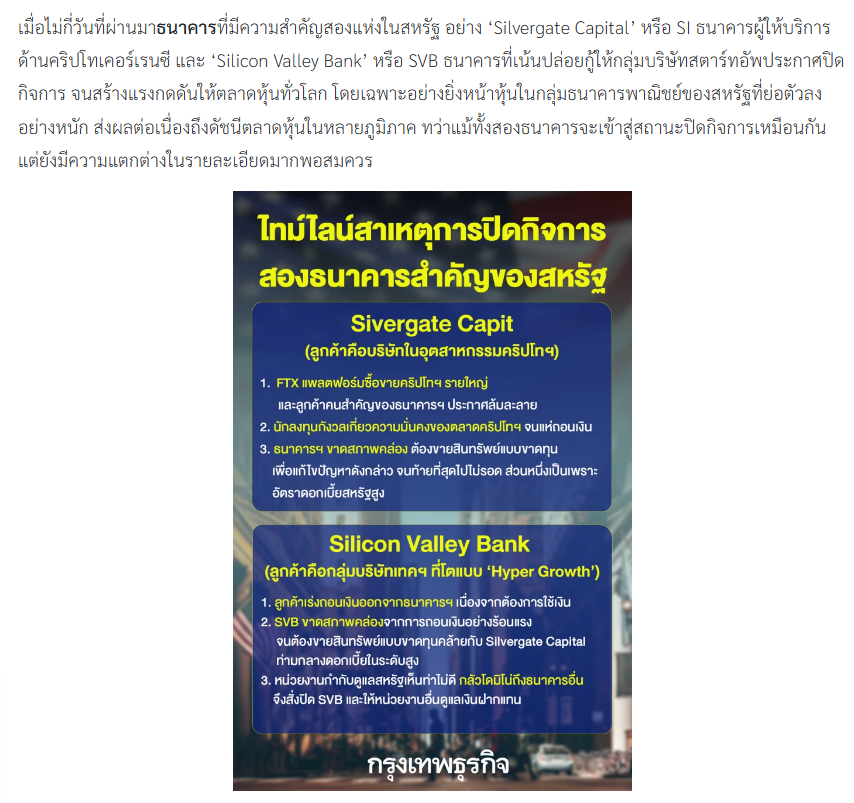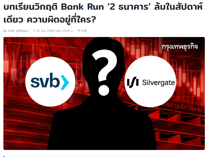 Credit by : บทเรียนวิกฤติ Bank Run ‘2 ธนาคาร’ ล้มในสัปดาห์เดียว ความผิดอยู่ที่ใคร? (bangkokbiznews.com)