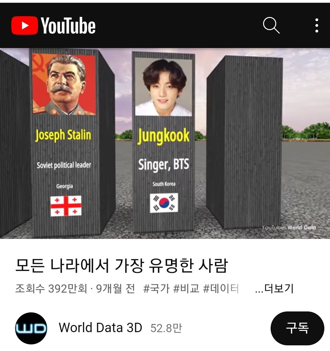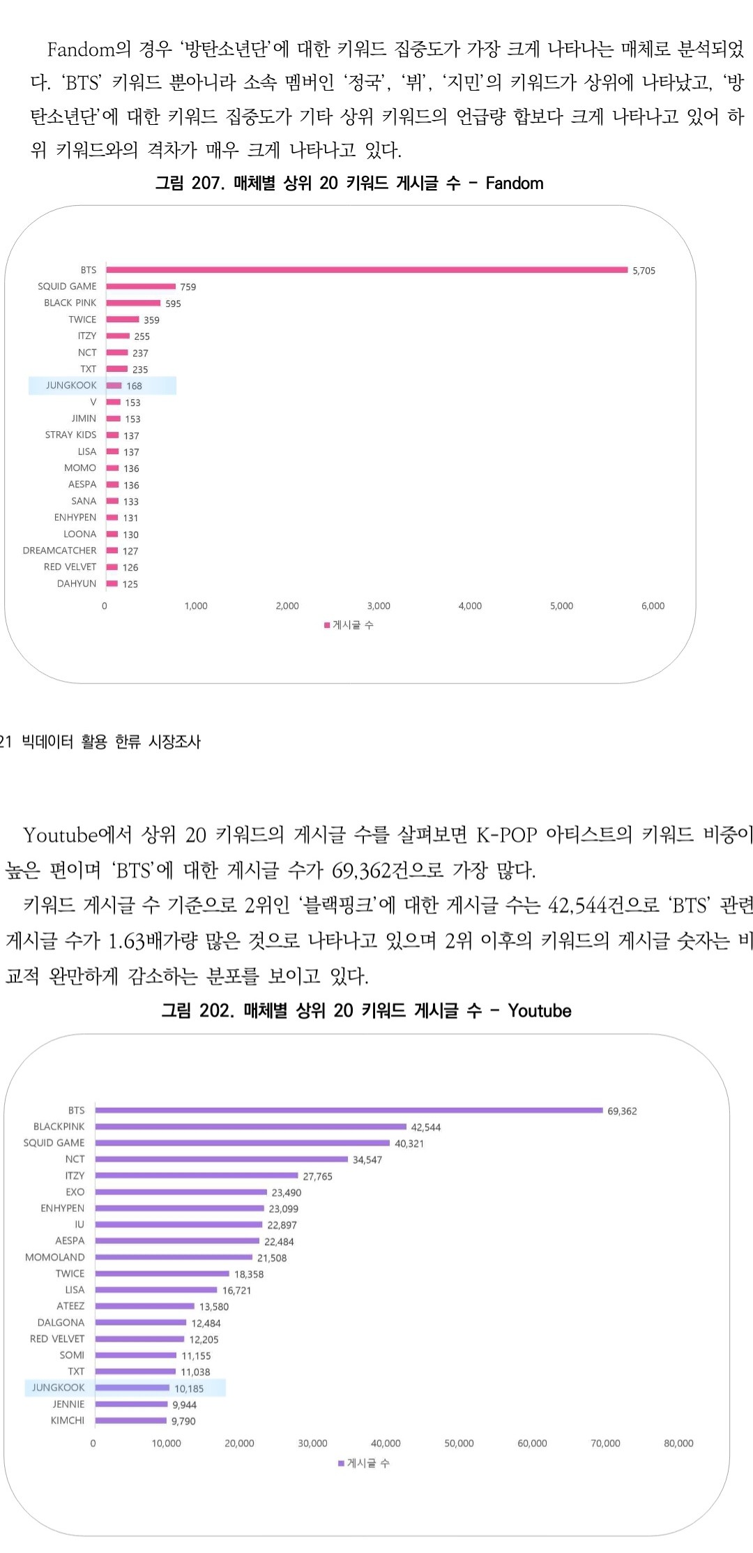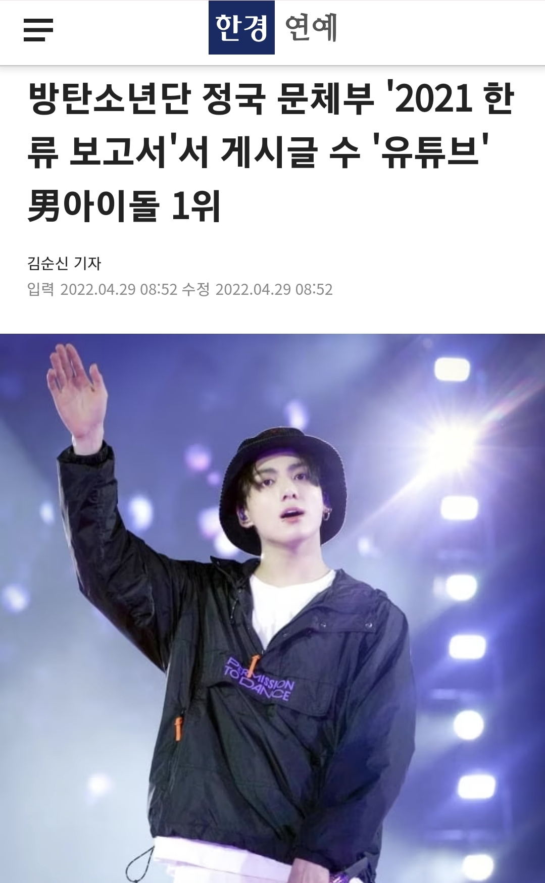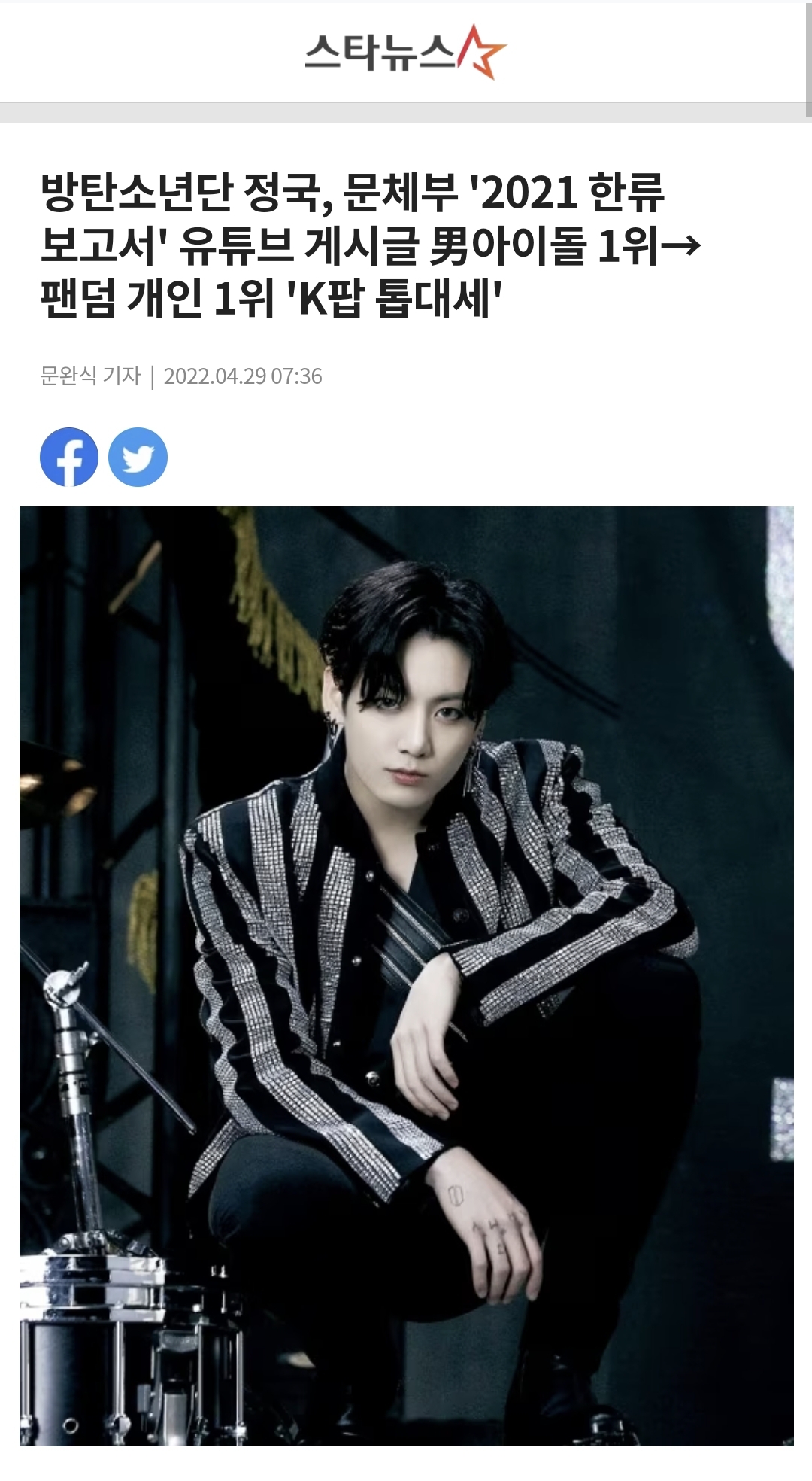 12. [+98, -51] ผลสำรวจจากกระทรวงวัฒนธรรม กีฬา และการท่องเที่ยวครั้งล่าสุด จองกุกยังครองอันดับ 1 ในกลุ่มแฟนคลับไอดอลและอันดับ 1 บน YouTube