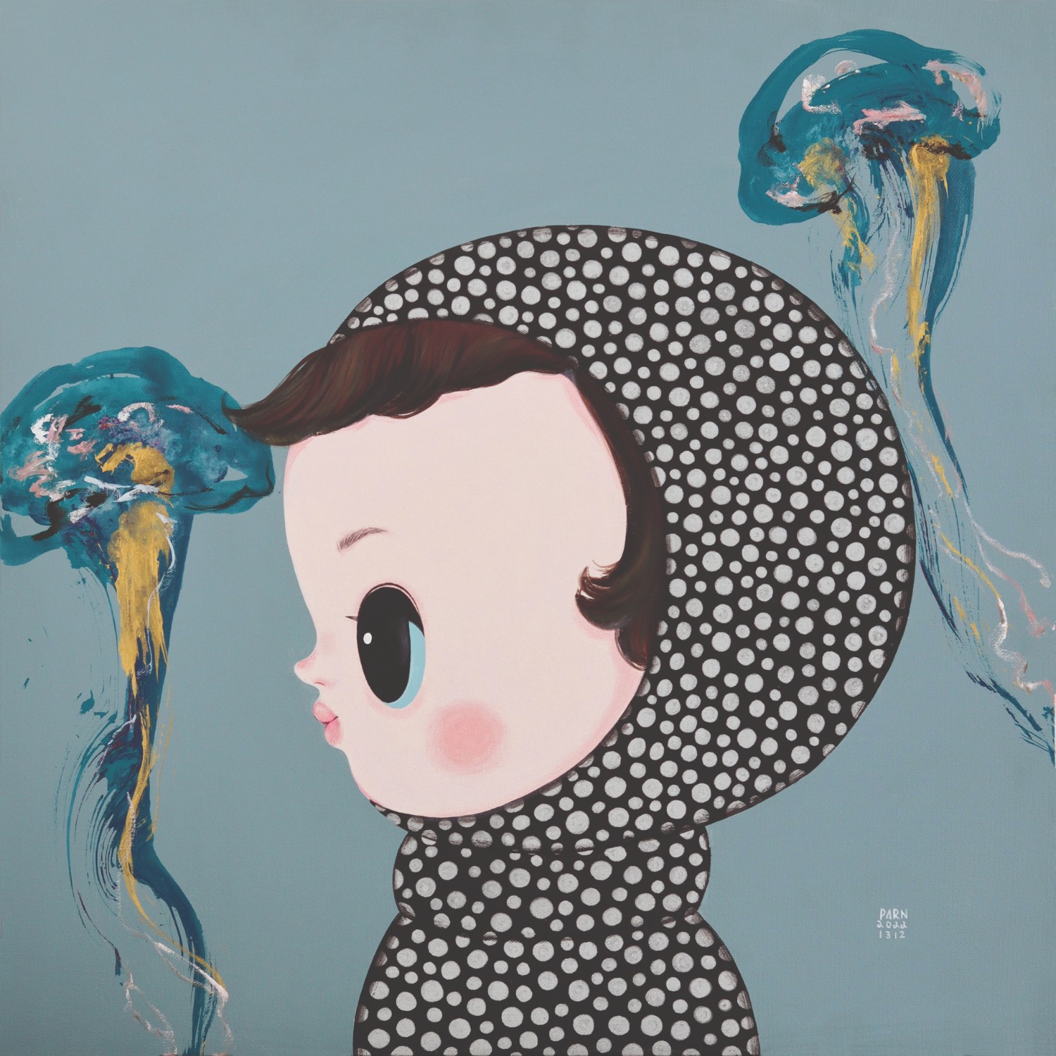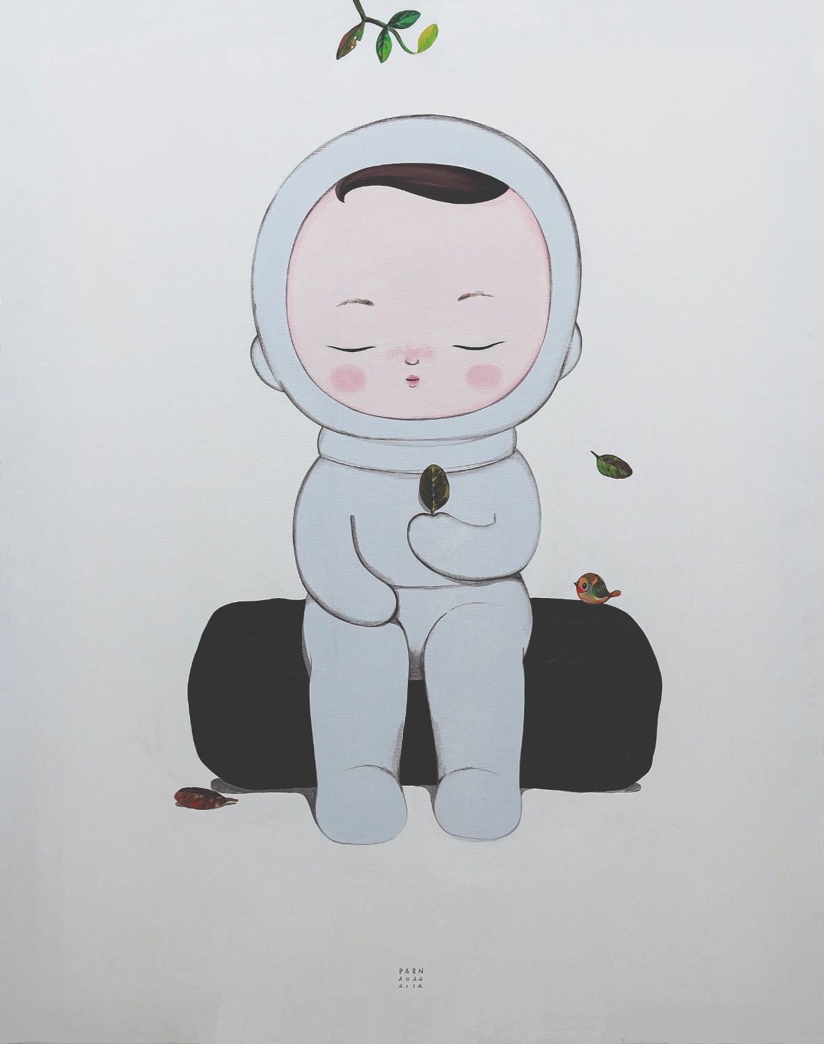 ผลงานทั้งหมดในนิทรรศการนี้นำเสนอผ่านมุมมองของแคแร็คเตอร์ซึ่งมีชื่อว่าโคคูน (Cocoon) เด็กน้อยจากต่างดาวผู้สวมชุดฮู้ดอันมิดชิดแต่กลับดูเป็นมิตรและมาพร้อมกับดวงตาที่เปิดกว้างเพื่อเรียนรู้ทุกสิ่งในโลกใบนี้อย่างมีความสุข