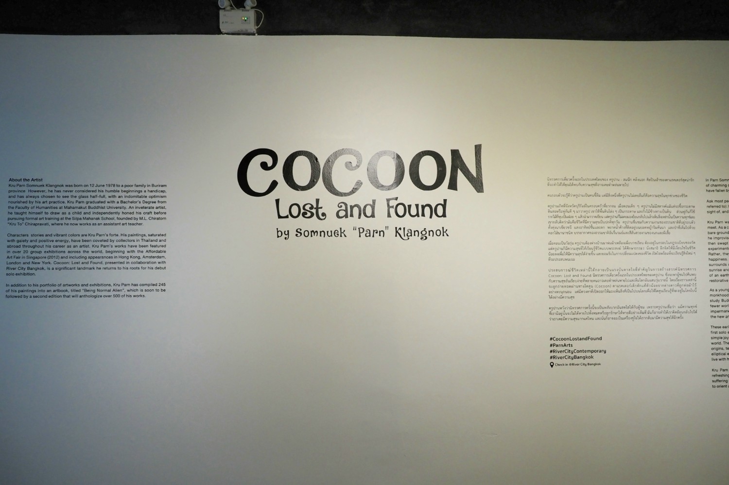 หลังจากที่ได้แสดงผลงานที่อาร์ตแฟร์ชื่อดังในต่างประเทศ ไม่ว่าจะเป็นที่ Affordable Art Fair ที่สิงคโปร์ในปี 2012 รวมถึงนิทรรศการทีjฮ่องกง อัมสเตอร์ดัม ลอนดอน และนิวยอร์ค ไม่นับรวมชิ้นงานที่สร้างสรรค์ร่วมกับแบรนด์และองค์กรการกุศลอีกมากมาย ถึงเวลาแล้วที่แคแร็คเตอร์และงานศิลปะอันน่าประทับใจของเขาจะได้นำเสนอในรูปแบบนิทรรศการเดี่ยวเป็นครั้งแรกในประเทศไทยภายใต้ชื่อ Cocoon: Lost and Found ซึ่งจัดขึ้นที่ริเวอร์ ซิตี้ แบงค็อก ด้วยความปรารถนาที่จะนำเสนอความสุขในทุกช่วงเวลาของชีวิตที่ทุกคนสามารถเดินเข้ามาสัมผัสได้ฟรีๆ ในห้องแสดงงานที่กว้างแต่กลับทำให้ผู้ชมรู้สึกอบอุ่นใจ