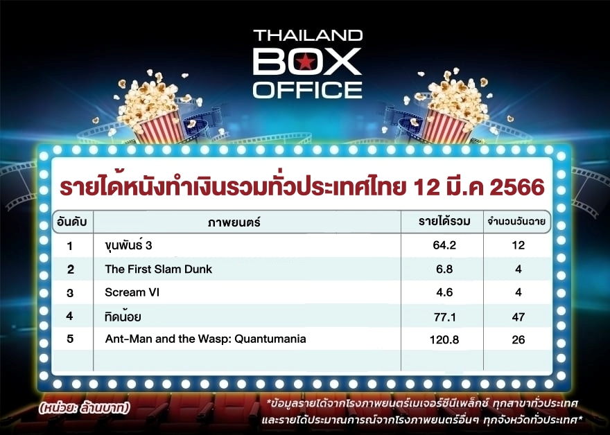 🤔 อันดับหนังทำเงินทั่วประเทศไทย ประจำสัปดาห์ (วันที่ 12/3/2566)