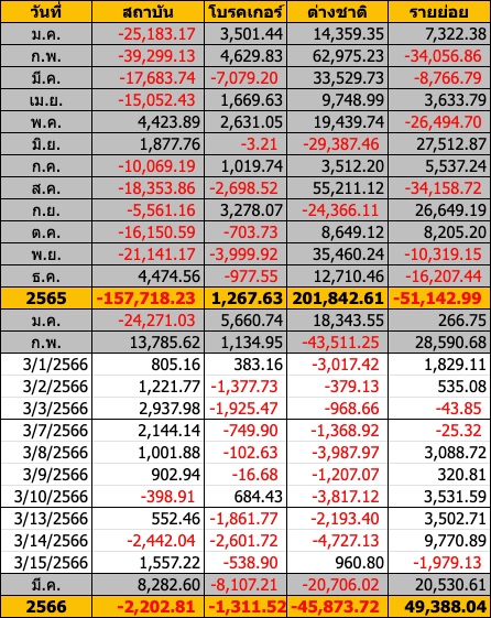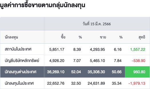Sinthorn Summary 15/3/2566 : ต่างชาติซื้อสุทธิ 960.80 ลบ.