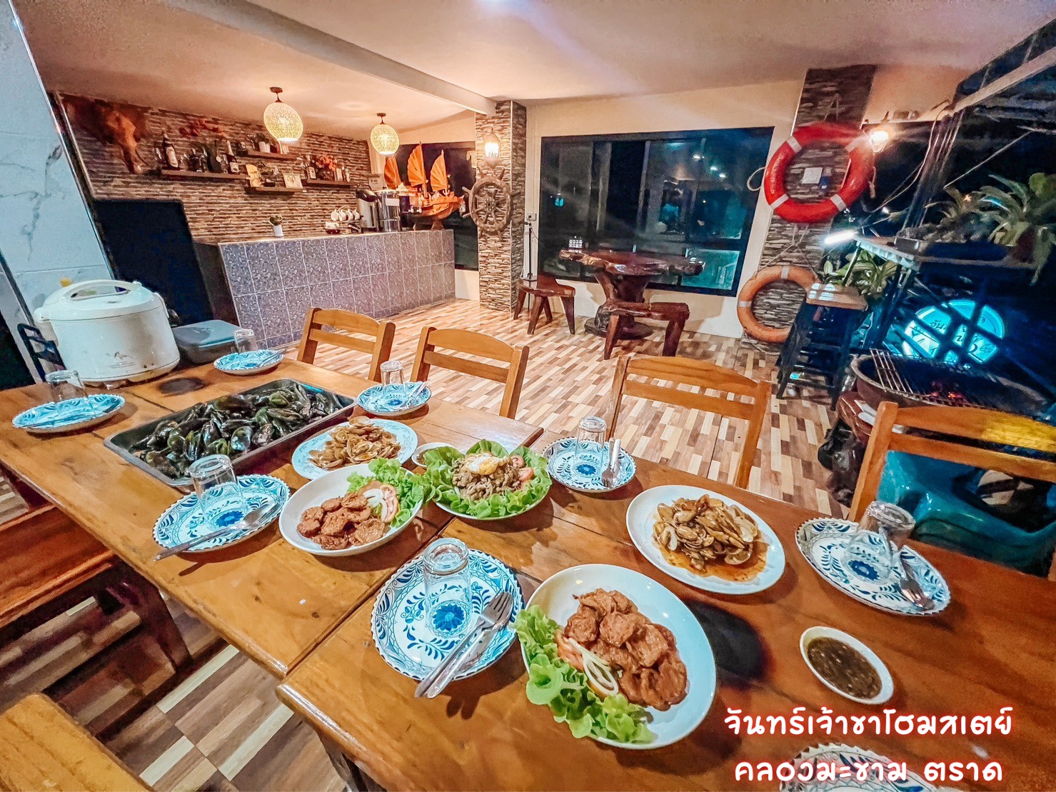 โฮมสเตย์ชุมชนประมง มีเรือตกหมึก ตกปลา เล่นแพเปียก บ้านคลองมะขาม ต.หาดเล็ก อ.คลองใหญ่ จ.ตราด ติดต่อจองที่พัก เรือ 082-6049816 บ้านพักมีสองหลังหลังแรกเป็นแนวคาเฟ่มีสามห้องนอน มีบาร์น้ำ โซนปิ้งย่าง